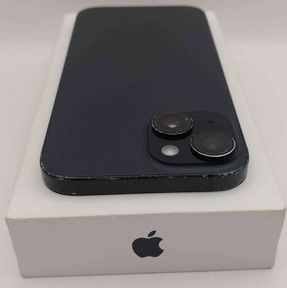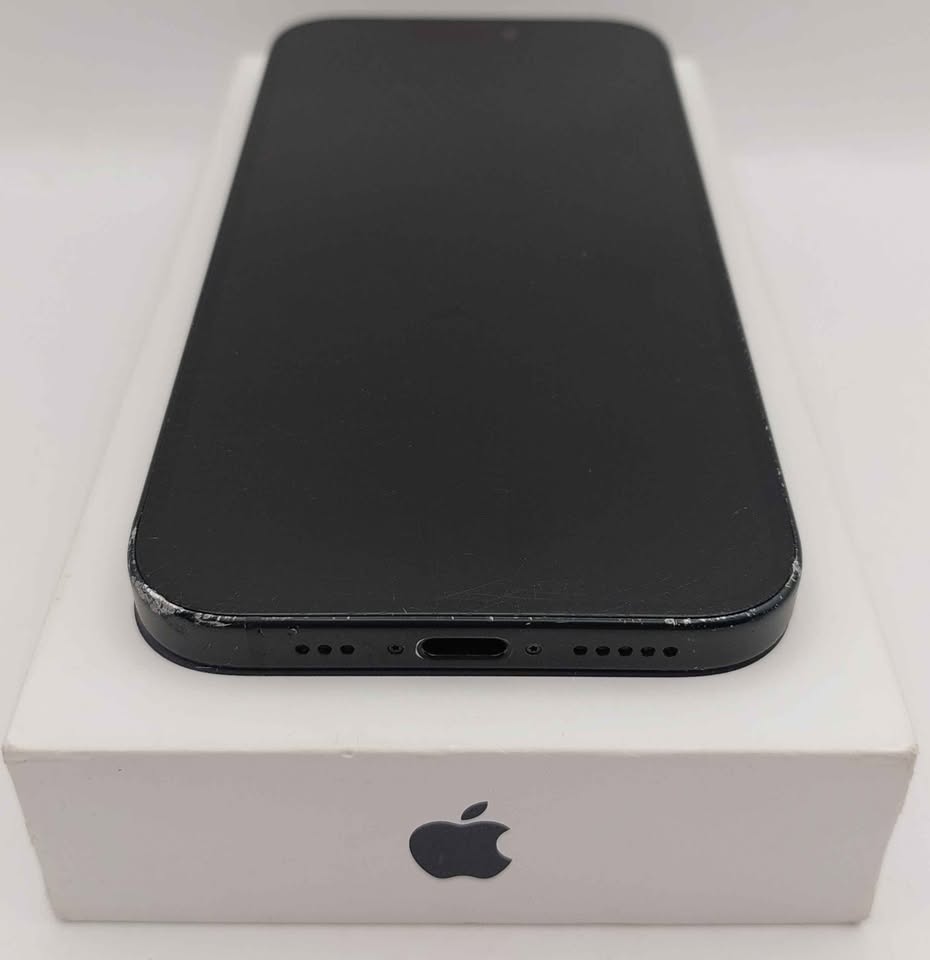 Apple iPhone 15 128GB black unlocked & Boxed ( heavily marked around sides and screen. 87% battery health )