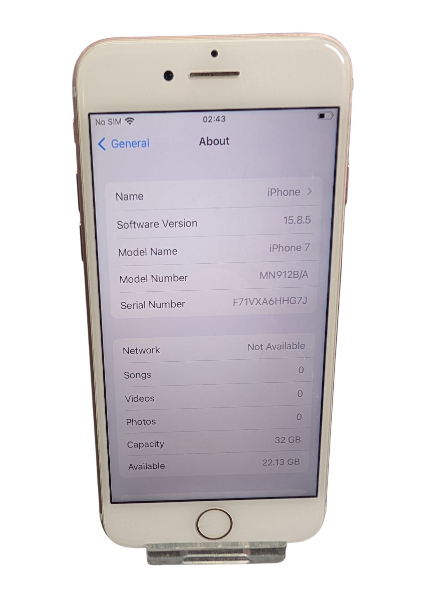HERE WE HAVE AN APPLE IPHONE 7 IN ROSE GOLD. THIS COMES FACTORY RESET AND UNBOXED WITH USB LEAD. THE IPHONE HAS 100% BATTERY HEALTH AND 32GB MEMORY. ** FOR ANY QUERIES PLEASE CALL OUR PRESTON STORE DIRECT MON-SAT 01772 204889