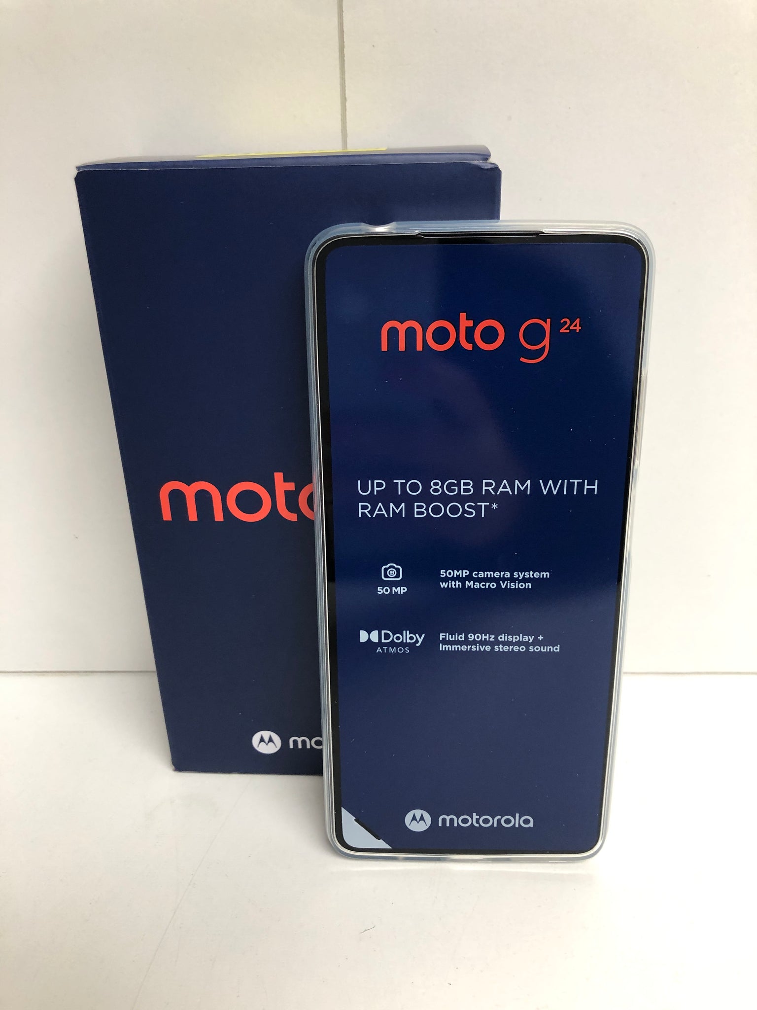 Discover the Motorola Moto G24, a smartphone designed to enhance your digital lifestyle. With its 6.56-inch HD+ display, you'll enjoy vibrant colors and clear visuals, whether you're browsing the web or watching videos. The high 90 Hz refresh rate ensures smooth scrolling and responsiveness. Capture every detail with the 50 megapixel rear camera, equipped with advanced features like Night Vision and Panorama, and take stunning selfies with the 8 megapixel front camera. Powered by a 5000 mAh battery, the Moto G24 keeps you connected throughout the day, supported by TurboPower charging for quick power-ups. Experience rich, immersive sound with dual stereo speakers enhanced by Dolby Atmos technology. Under the hood, the MediaTek Helio G85 processor with an 8-core CPU delivers robust performance for all your apps and games. The Motorola Moto G24 is not just a smartphone; it's your gateway to a world of entertainment, connectivity, and creativity.