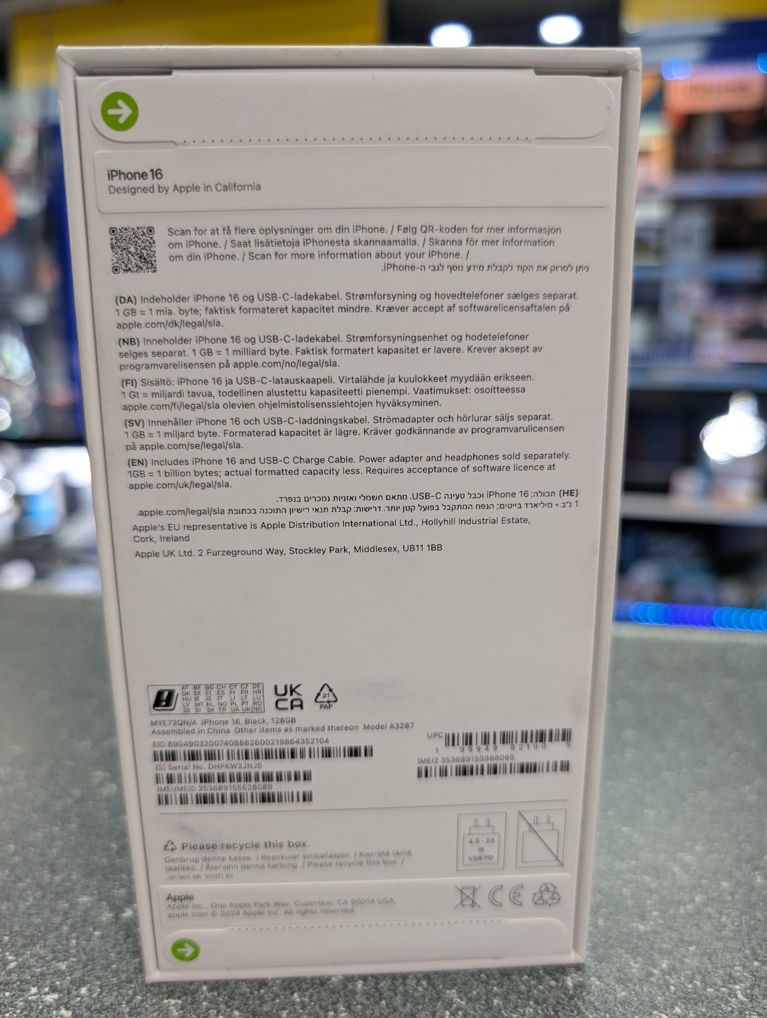 HEERE WE HAVE A BRAND NEW FACTORY SEALED APPLE IPHONE 16 SMART MOBILE PHONE. THIS FEATURES 128GB MEMORY AND IS UNLOCKED TO ALL NETWORKS. ** FOR ANY QUERIES PLEASE CALL OUR PRESTON STORE DIRECT MON-SAT 01772 204889