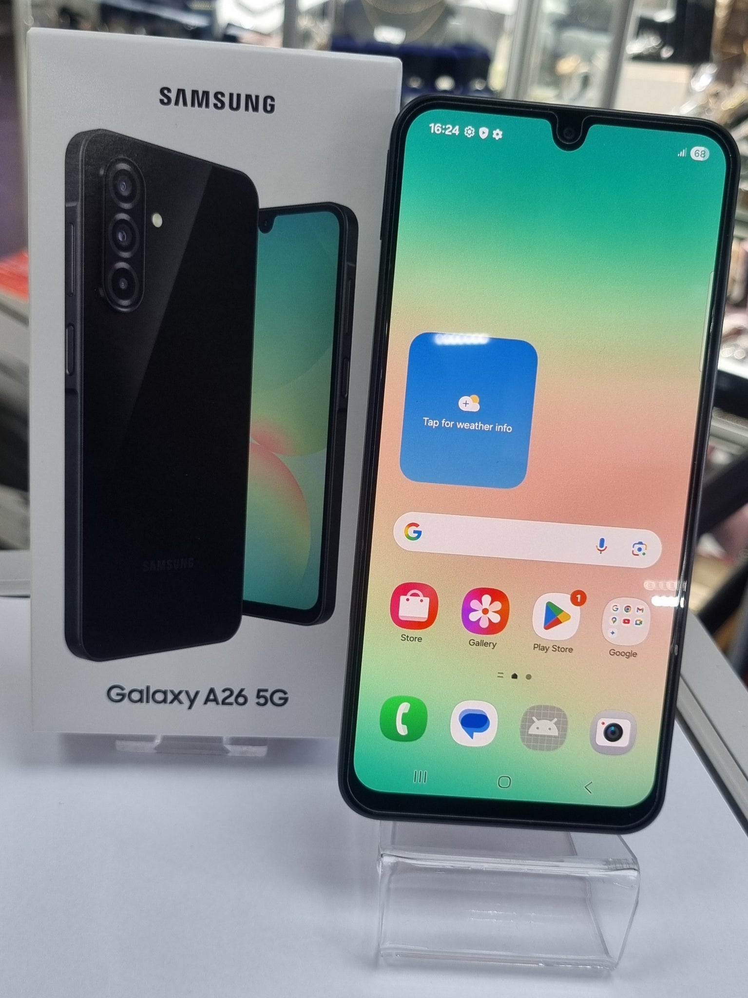 Samsung galaxy A26, 128gb storage, 5g unlocked to any network, black 6gbram, latest Android version. Comes with box and charging cable type c. This is in immaculate condition. *************** Will be posted immediately