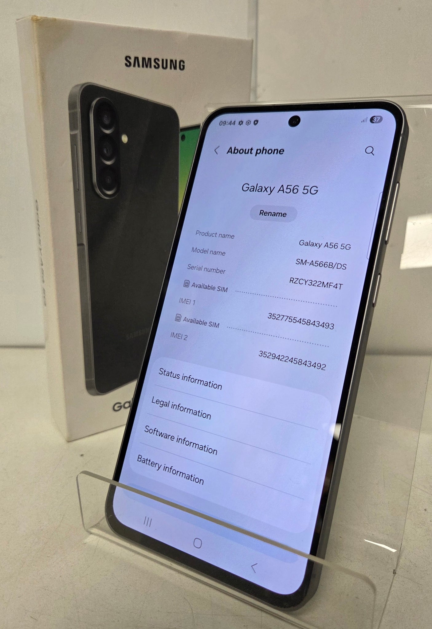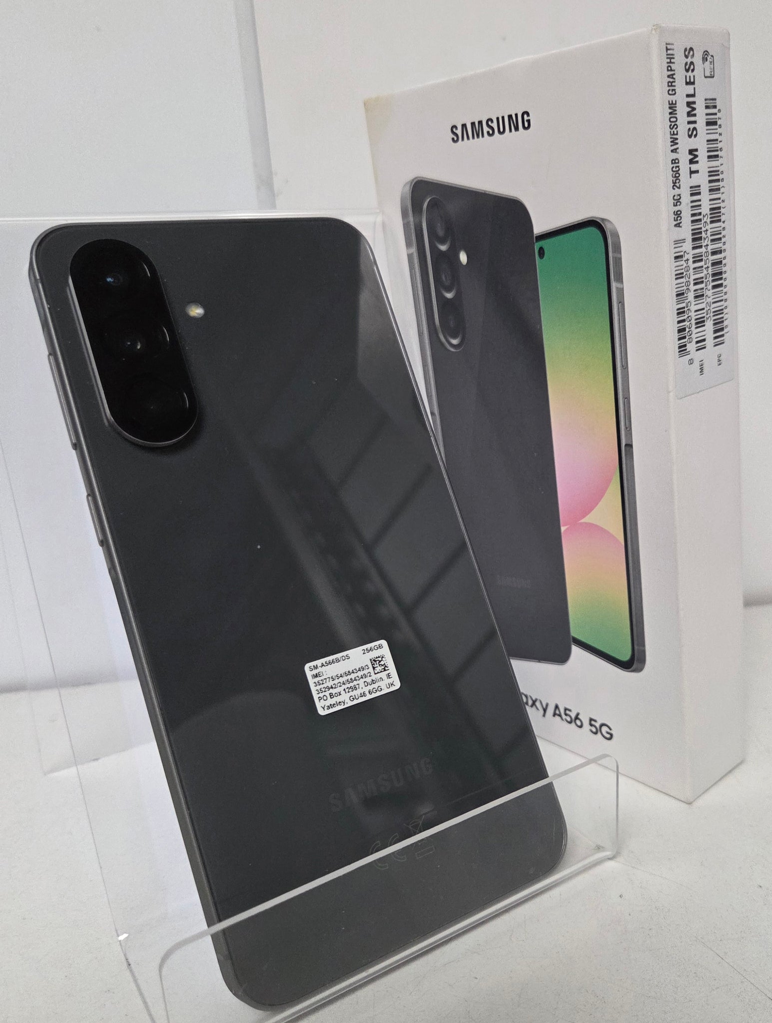 The Samsung Galaxy A56 5G in Awesome Graphite blends performance, durability, and sleek design into a powerful everyday device. Its 6.7-inch Super AMOLED display with a 120Hz refresh rate and FHD+ resolution delivers fluid visuals and vibrant detail - perfect for streaming, scrolling, or gaming. Corning Gorilla Glass Victus+ protects the screen against scratches and accidental drops, while IP67 water and dust resistance adds an extra layer of durability. Under the hood, the Galaxy A56 is powered by the efficient Exynos 1580 processor paired with 8GB of RAM, ensuring smooth multitasking, fast app launches, and responsive performance throughout the day. With 256GB of internal storage, there's plenty of room for apps, photos, and files - and support for additional storage via microSD if needed. The triple rear camera setup includes a 50MP main lens, 12MP ultra-wide, and 5MP macro sensor, giving users the flexibility to shoot everything from sweeping landscapes to close-up textures. A 12MP front camera ensures sharp selfies and clear video calls. Whether you're using Night mode or capturing fast action, the A56 is ready for every moment. Its robust 5000mAh battery supports Super Fast Charging 2.0, so you can recharge quickly and stay powered throughout your busiest days. Running Android 15 with One UI 7, the phone offers a clean and customisable interface, complete with advanced features and 6 years of security updates to keep your data safe. Whether for business or personal use, the Galaxy A56 offers outstanding value in a premium design.
