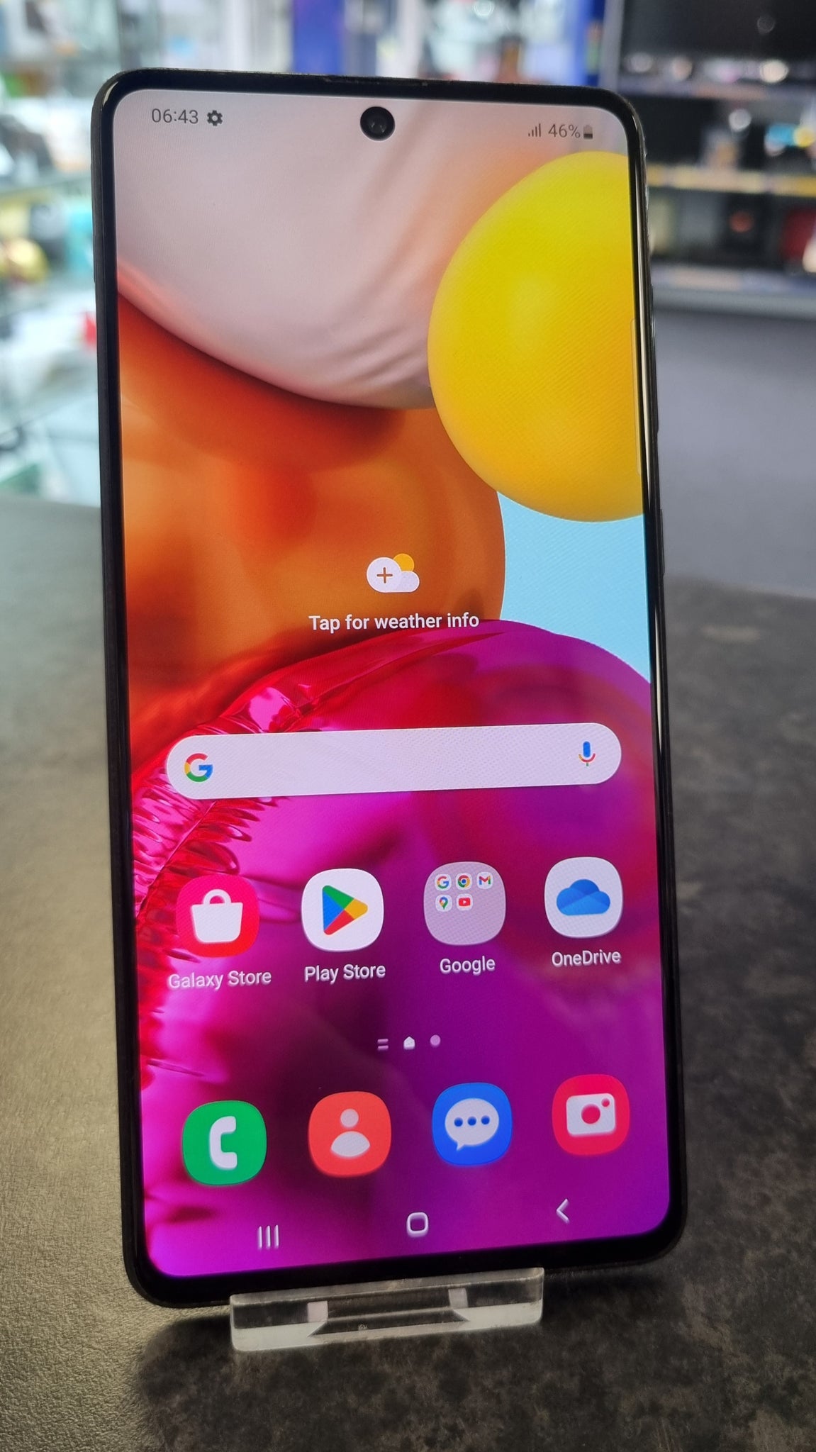Samsung galaxy a71, with 128gb storage, this phone is fully working. Factory reset ready for use. Has cosmetic marks from general use. Comes unboxed. This is unboxed, includes type c charging cable. Locked to Vodafone. ** For any queries please contact our Chorley store direct on 01257 752333