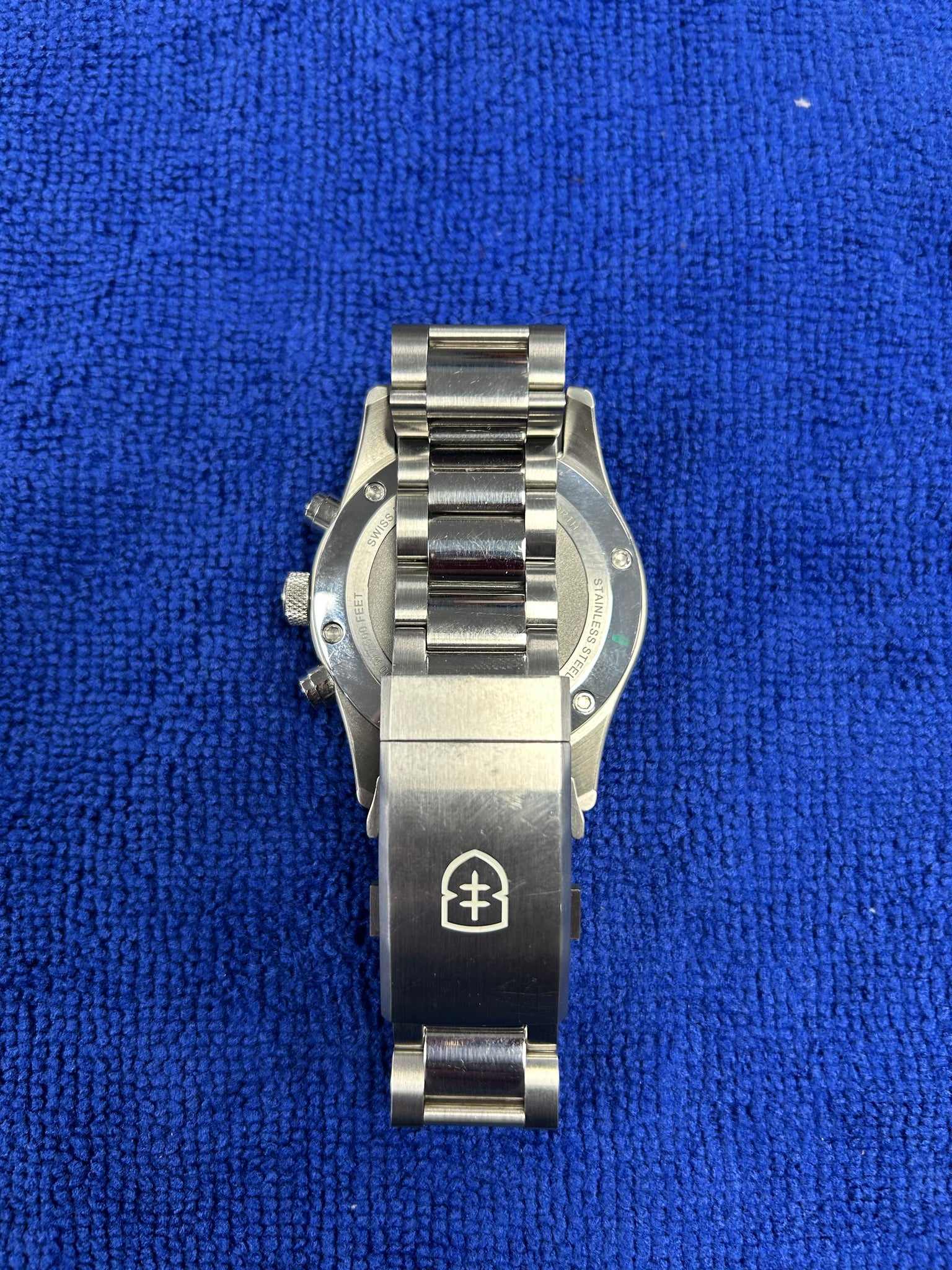 A classic 'tech-diver' chronograph designed for those who like a little more function, the Bloxworth is a true go-anywhere, do-anything watch. Its Swiss-made 13-jewel chronograph movement has a three-year battery life (subject to how much the stopwatch function is used) and is secured inside our proprietary shock-absorbing steel movement housing. The 44mm diameter case is pebble-like so it wears beautifully even on smaller wrists and is machined from solid 316L marine-grade stainless steel.