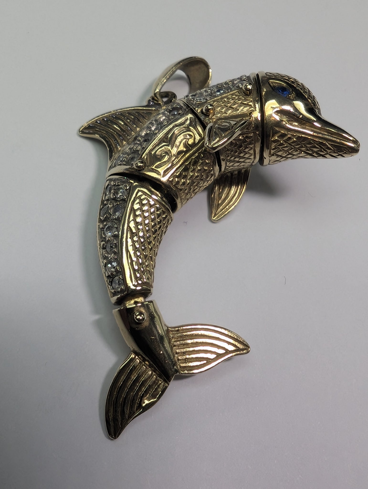 HERE WE HAVE A 9CT GOLD DOLPHIN PENDANT WITH CZ STONES. THIS PENDANT IS IN VERY GOOD CONDITION AND COMES UNBOXED. TOTAL WEIGHT OF 11.57G. ****** FOR ANY QUERIES PLEASE CONTACT OUR PRESTON STORE DIRECTLY MON-SAT AT 01772 204889.