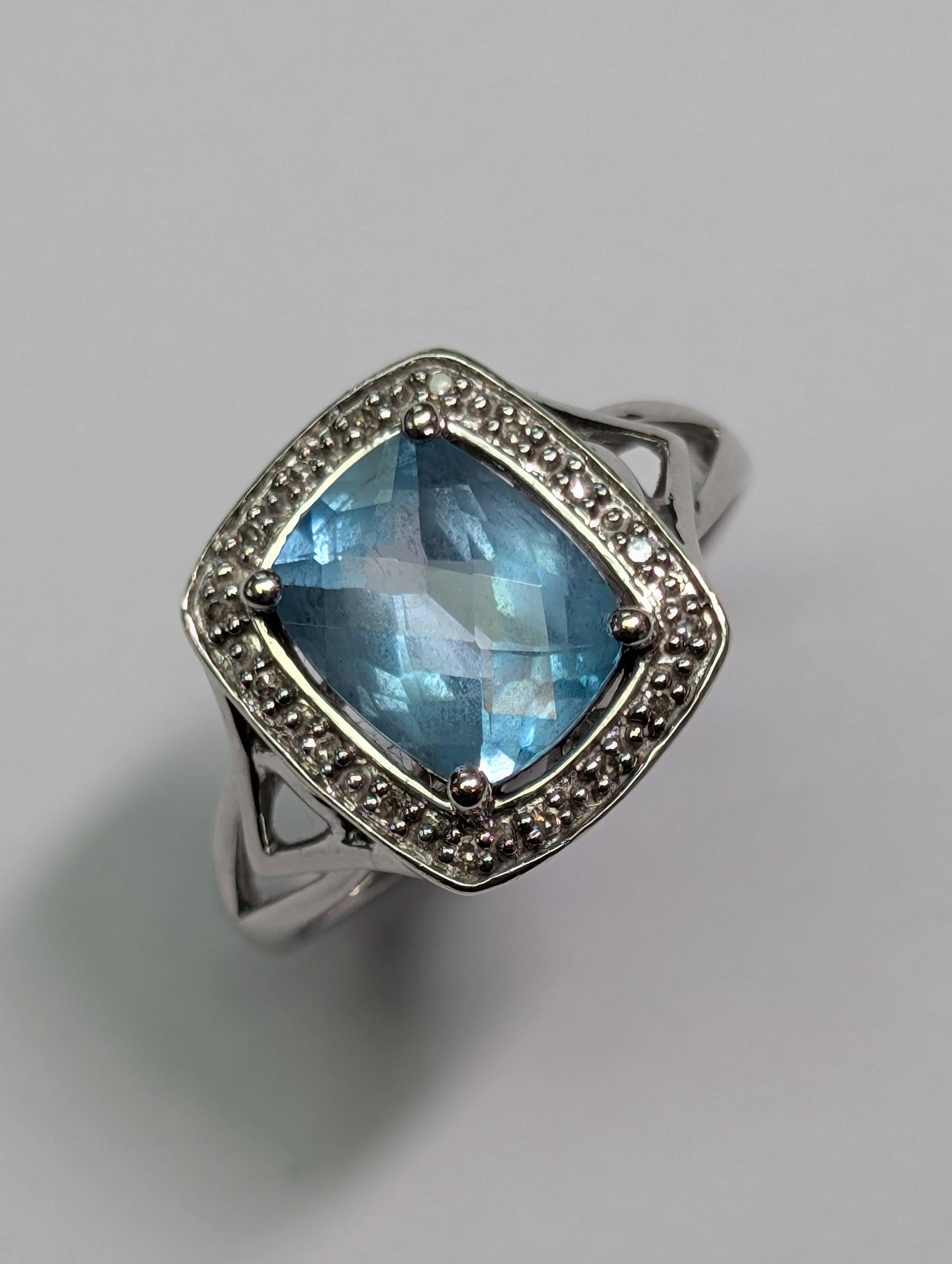 9ct White Gold Diamond & Aqua Blue stone Ring