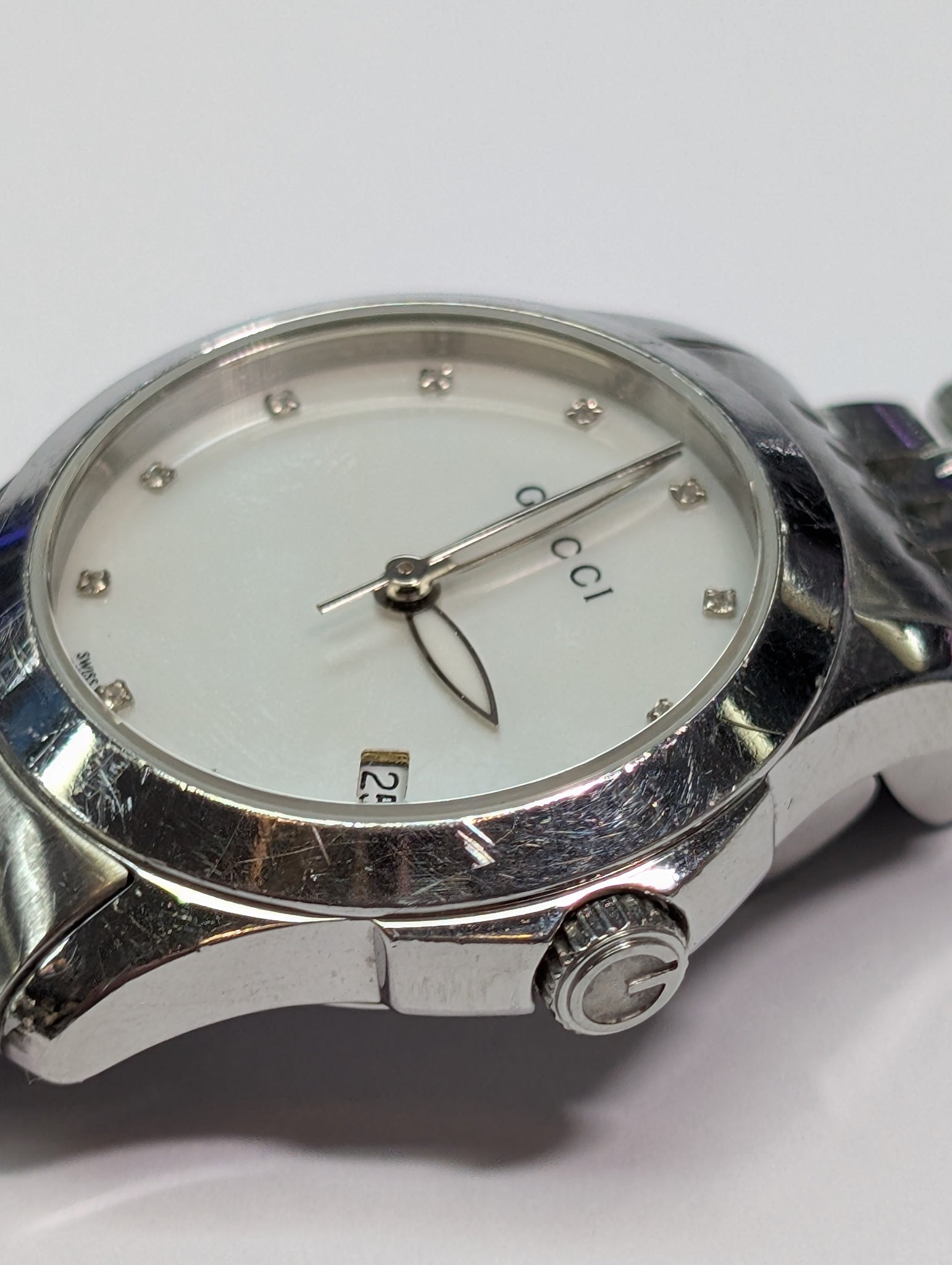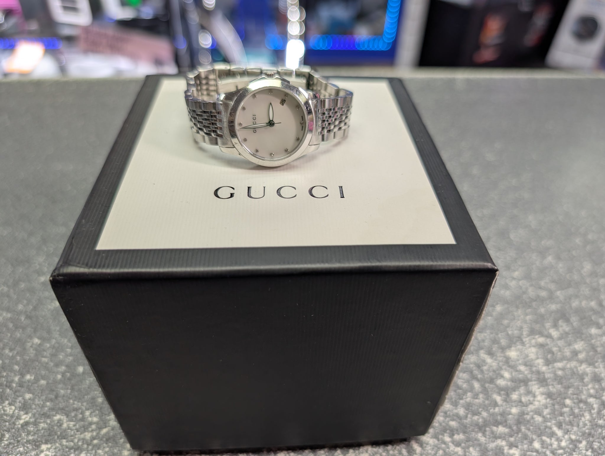 HERE WE HAVE A LADIES GUCCI WATCH BOXED WITH BOOKLETS. THE WATCH IS IN FAIR CONDITION WITH LIGHT COSMETIC WEAR. ** FOR ANY QUERIES PLEASE CALL OUR PRESTON STORE DIRECT MON-SAT 01772 204889
