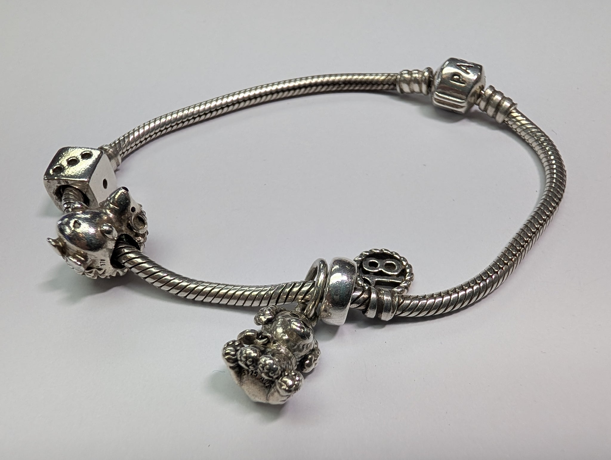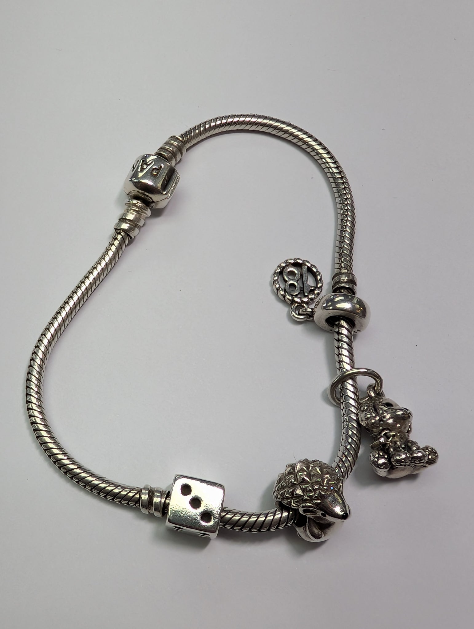 HERE WE HAVE A SILVER PANDORA CHARM BRACELET WITH CHARMS. THIS IS IN GOOD CONDITION AND CONES UNBOXED. ** FOR ANY QUERIES PLEASE CALL OUR PRESTON STORE DIRECT MON-SAT 01772 204889