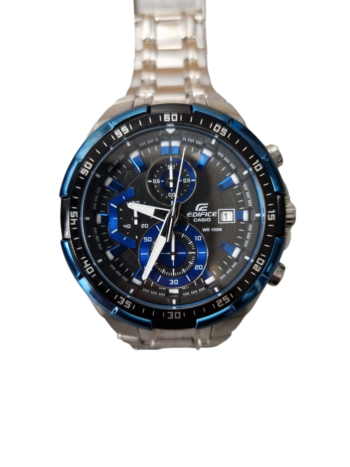 Classic yet durable, this H Samuel Exclusive EDIFICE timepiece features a chronograph display with a useful stopwatch. This watch is housed in a stainless steel case and a striking blue dial, which is framed by scratch resistant mineral glass, and water resistant to 100M, Perfect for everyday styling.
