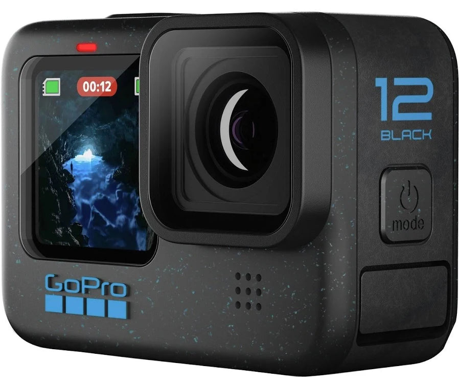 The GoPro HERO12 Black is a fantastic action camera that takes amazing videos and photos in different places. It's designed to be tough and lightweight, making it easy to use anywhere, whether you're on land or in the water. For videos, it can record in super high quality – the best at 5.3K, which means your videos will look really sharp and clear. It can also do cool things like 4K at 120 frames per second and 2.7K at 240 frames per second, giving you flexibility for different types of recording. The camera has something called High Dynamic Range (HDR), which makes your videos look even better by capturing more details and colors. And the battery is improved, so it lasts twice as long when recording at the highest quality – up to 70 minutes! To make your videos smooth and steady, the HERO12 Black has an awesome feature called HyperSmooth 6.0 with AutoBoost. This helps a lot when you're recording in bumpy or shaky places. Plus, it's easy to attach to things, so you can record without holding it – perfect for action-packed moments.