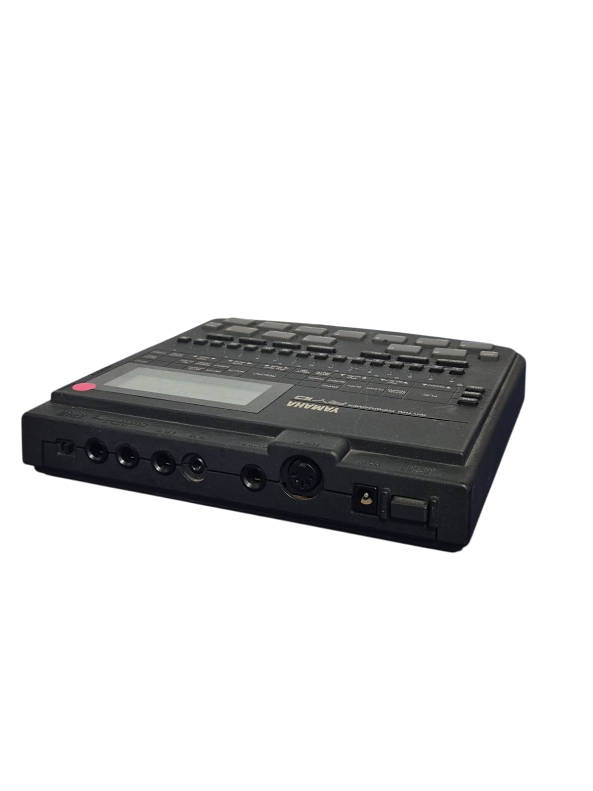 The Yamaha RY10 is a portable, battery-powered digital drum machine and rhythm composer from the late 1980s, known for its 12-pad keyboard-style interface, AWM sound generation, and versatile 16-step sequencer. It features 250 adjustable voices, 16 preset drum banks, 50 preset patterns, and internal memory for 50 user patterns and 36 songs. Its built-in speaker, headphone jack, MIDI in/out, and battery operation make it ideal for on-the-go musicians.