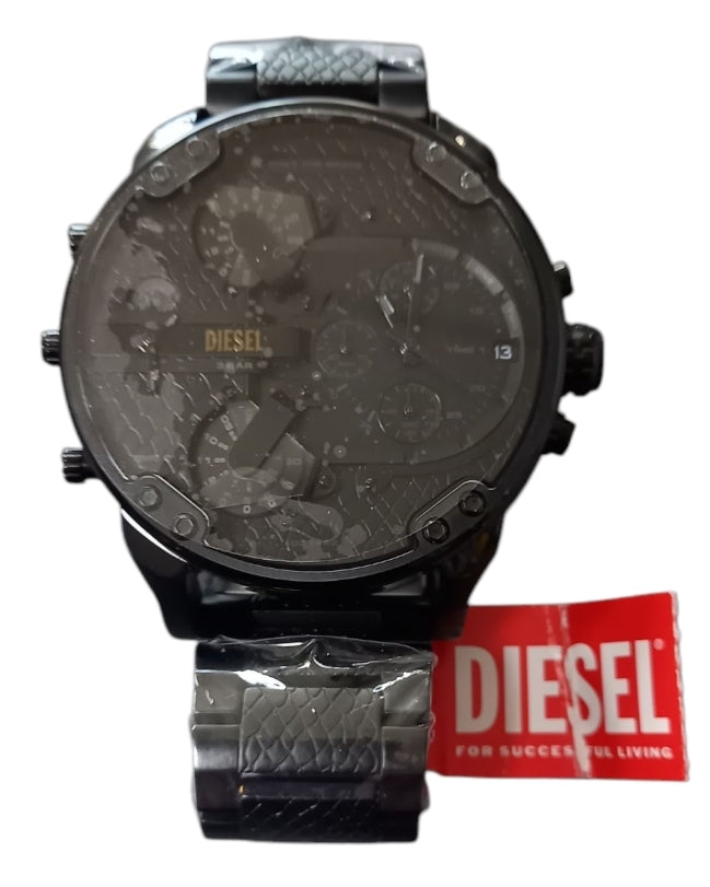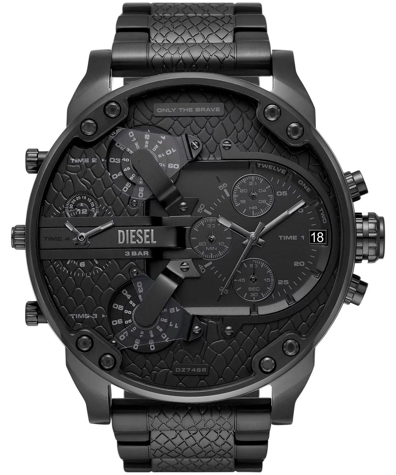 Watch in excellent condition, still has protective film on watch, box is in used condition Sku: DZ7468 Case Size: 57 mm Movement: Two Hand Platform: MR. DADDY 2.0 Strap Material: Stainless Steel Strap Colour: Black Case Water Resistance: 3 ATM Case Material: Stainless Steel Case Colour: Black Dial Colour: Black Strap Width: 24 mm Closure: Bracelet Deployant Strap Inner Circumference: 200 +/- 5 mm Crystal Type: Mineral