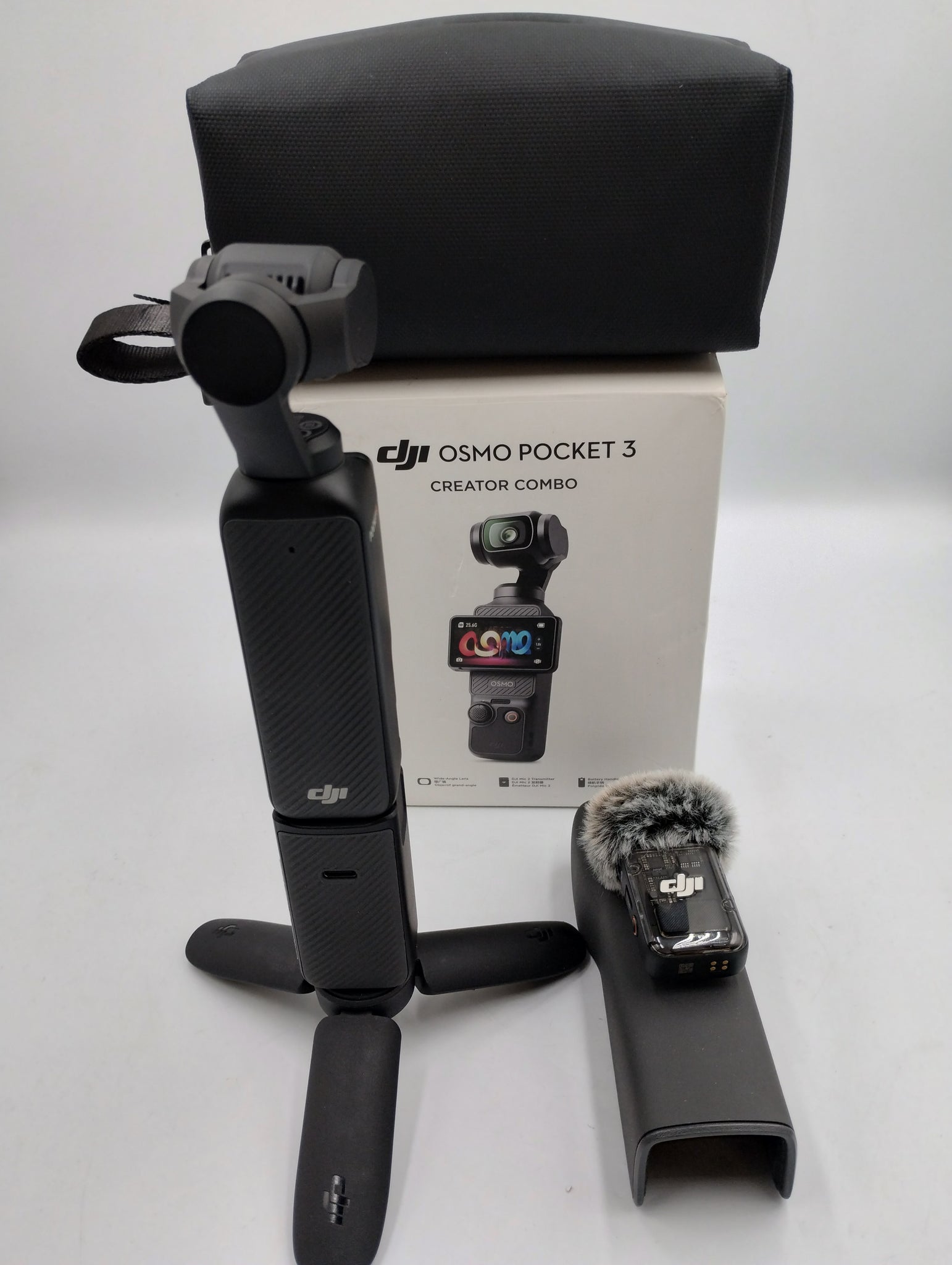 - Included Accessories: Osmo Mini Tripod, Osmo Pocket 3 Battery Handle, Osmo Pocket 3 Black Mist Filter, Osmo Pocket 3 Carrying Bag, Wide-angle lens, DJI Mic 2, Protective cover, Variable ND filter set