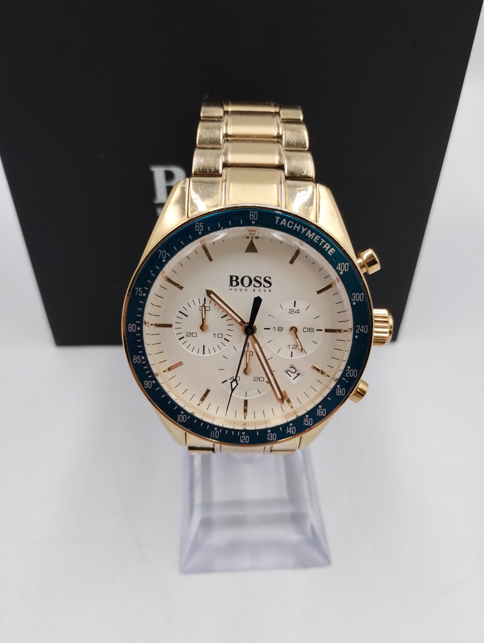 Hugo boss Men's gold toned watch Grade b good condition may be a few signs of use but works perfect Boxed **complete with spare links**