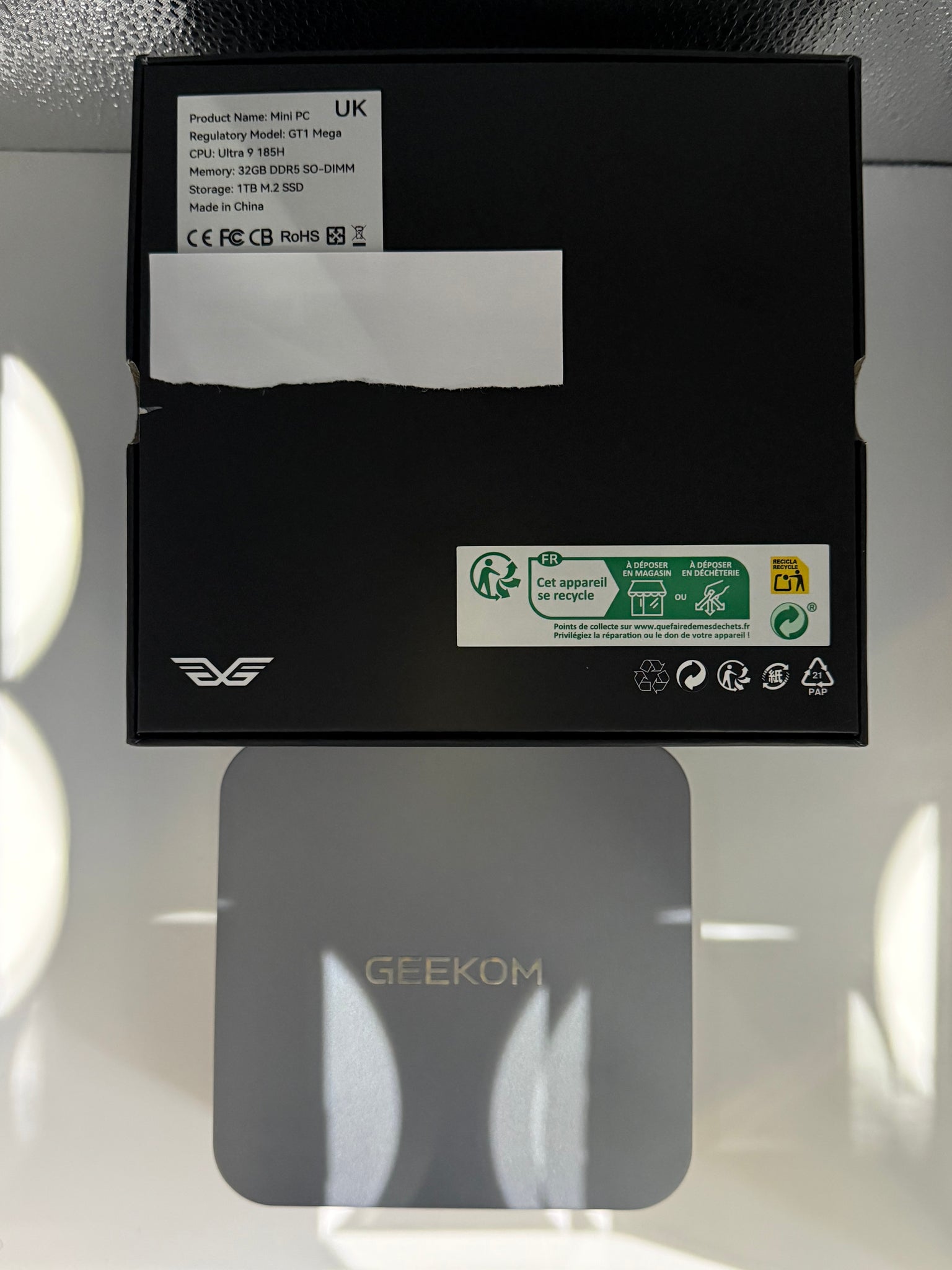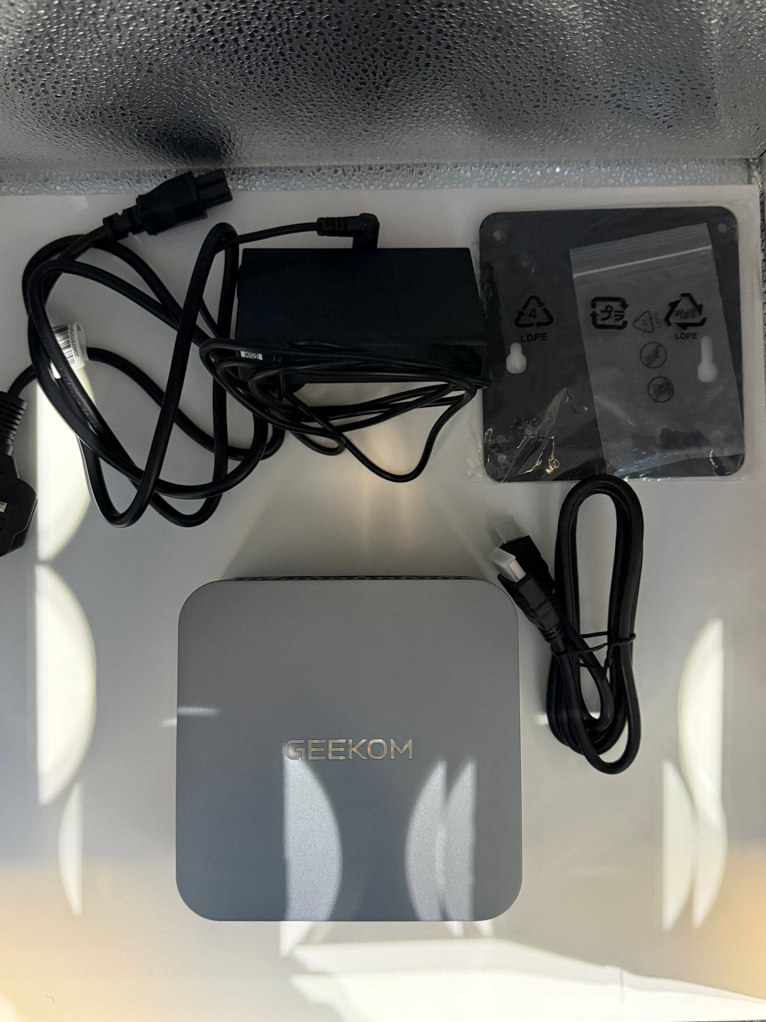 The GEEKOM GT1 Mega Mini PC Comes in Great Condition with all leads i.e. Power Cable and HDMI Cable, mount and box, This SPEC, ULTRA 9 185H, 32GB DDR5 SO-DIMM MEMORY, And 1TB of SSD Storage. With Windows 11. Intel Ultra 9 + 1.4GHz AI NPU — Smoothly runs over 20 categories and 500+ AI models. Ideal for AI developers, content creators, and advanced users seeking top-tier performance. Intel Arc Graphics (Ray Tracing + XeSS) — Delivers stunning 8K visuals and smooth rendering for design work, gaming, and video editing, providing an immersive and lifelike experience. 8 USB Ports + Abundant I/O Interfaces — Connect to monitors, external hard drives, and SD cards, and lock them with the Kensington Security Lock — No adapters required, keeping your space cleaner. 32GB DDR5 RAM (upgradeable to 64GB) + up to 4TB storage — Lightning-fast multitasking: edit 4K video, run AI datasets, and store large files smoothly without lag. Upgradeable in the future. Dual USB4 (40Gbps) ports — Thunderbolt-level high-speed data transfer, 8K display output, and external graphics card support — replaces the bulky OCuLink connection with just one cable. Advanced silent cooling system — maintains low temperatures even under heavy loads (AI training, 4K rendering). Work late into the night without disturbing family or roommates — quiet, stable, and stress-free.