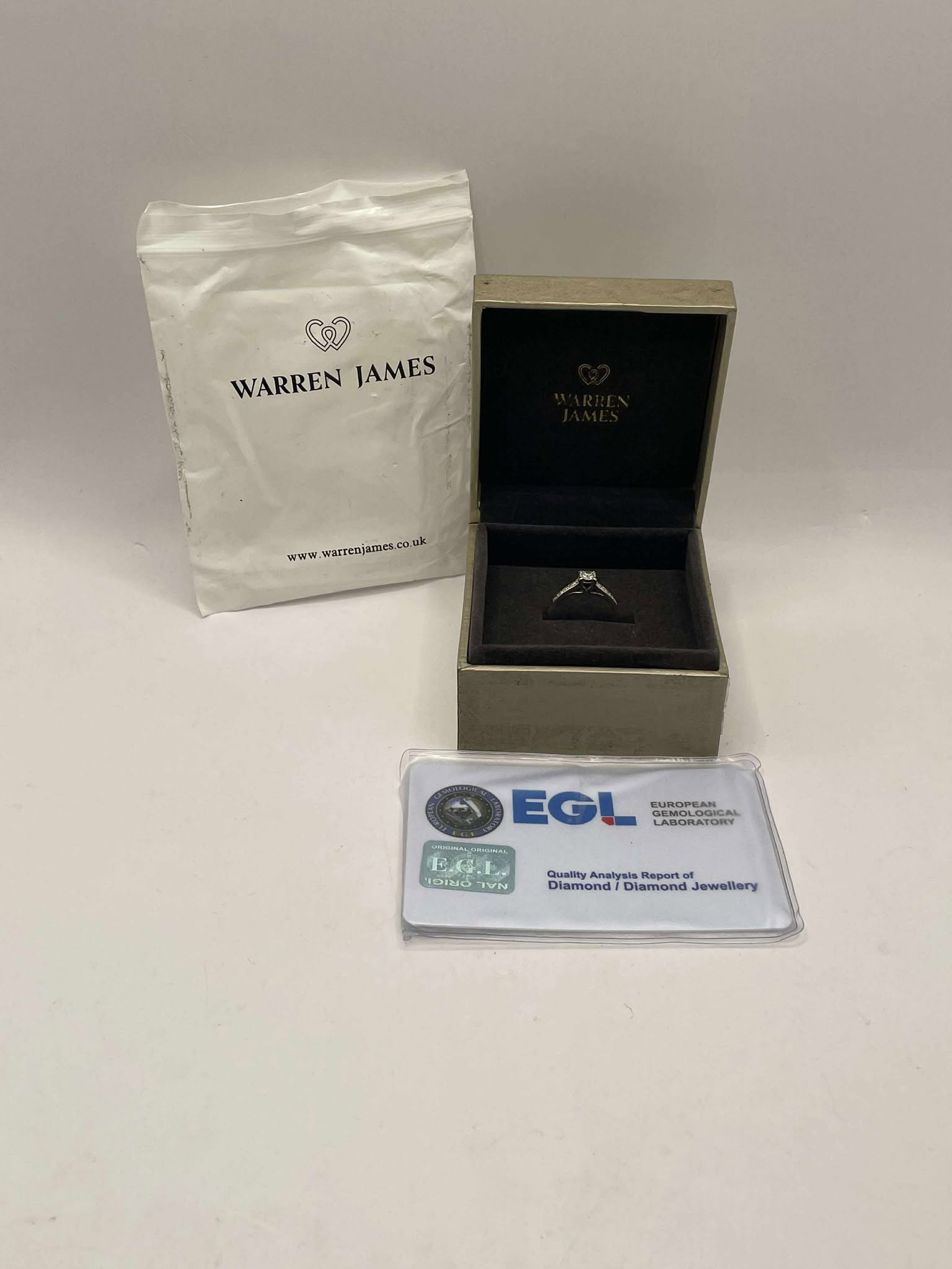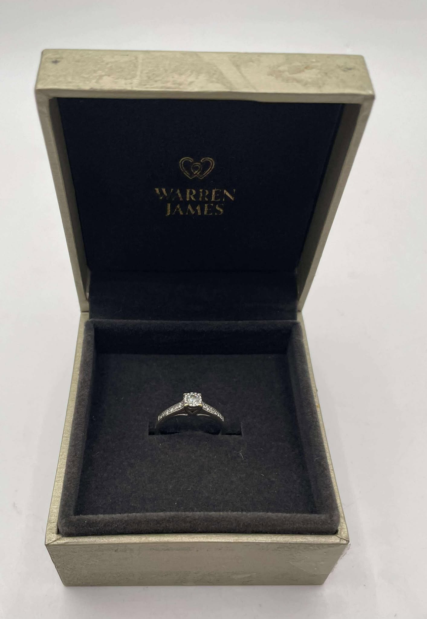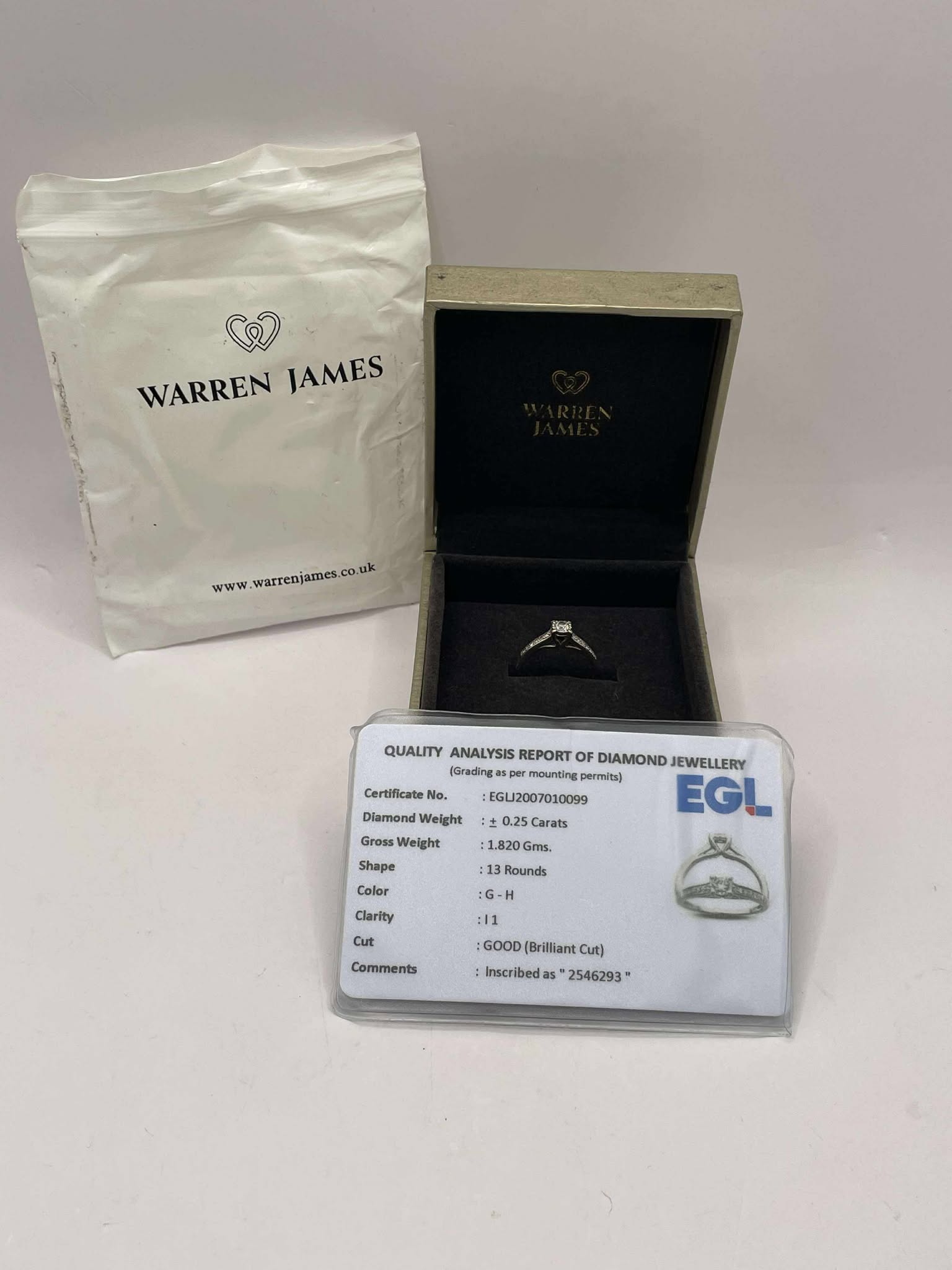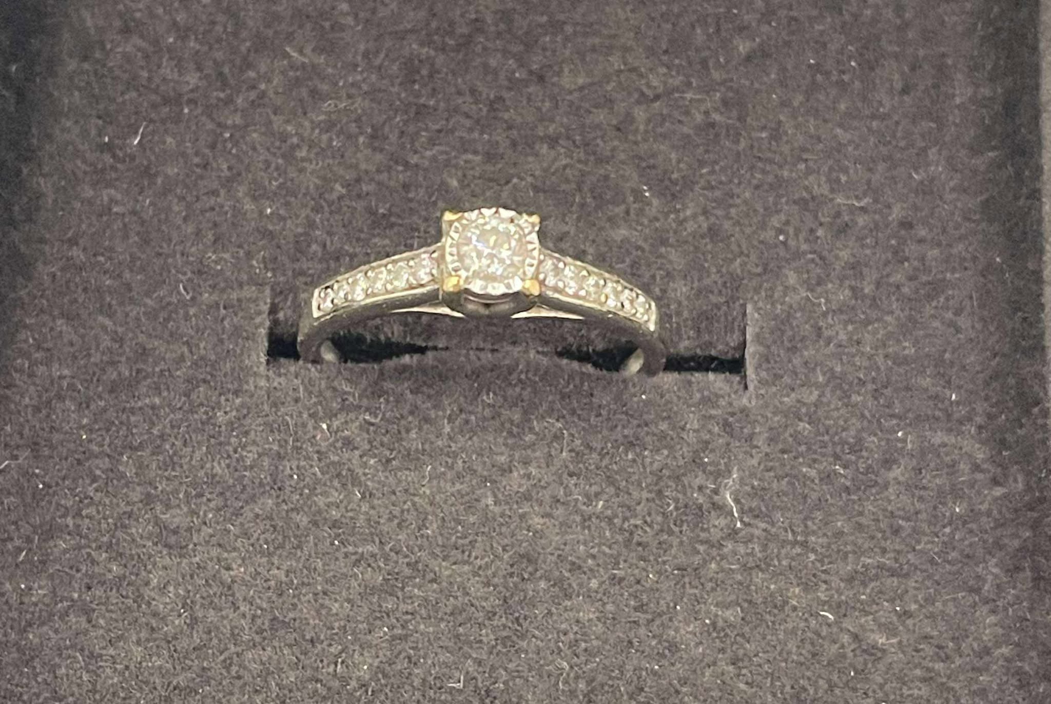 9ct White Gold ring Size - M Comes with quality analysis report of diamond jewellery card Approx weight- 1.8g Comes boxed Good condition