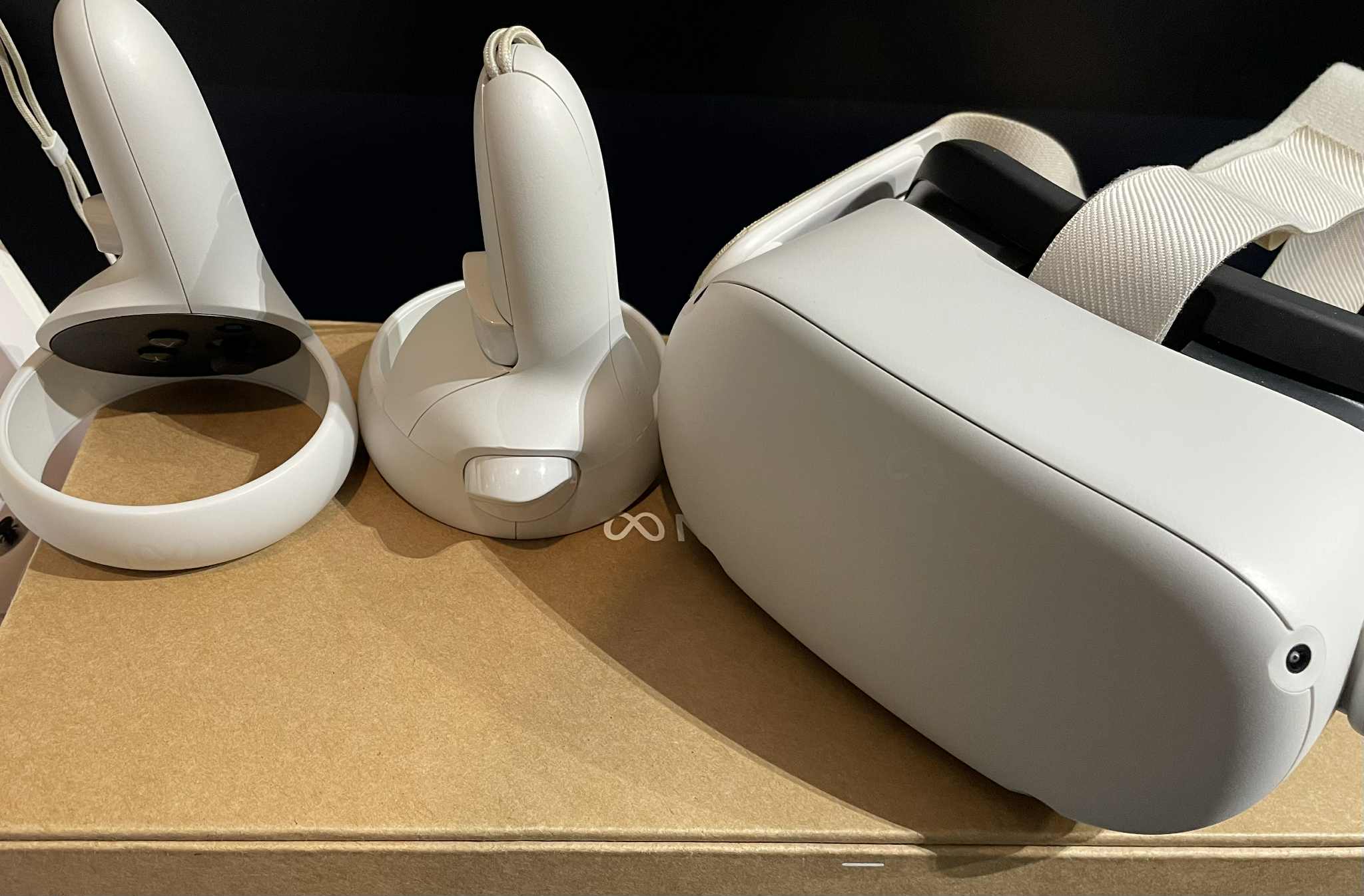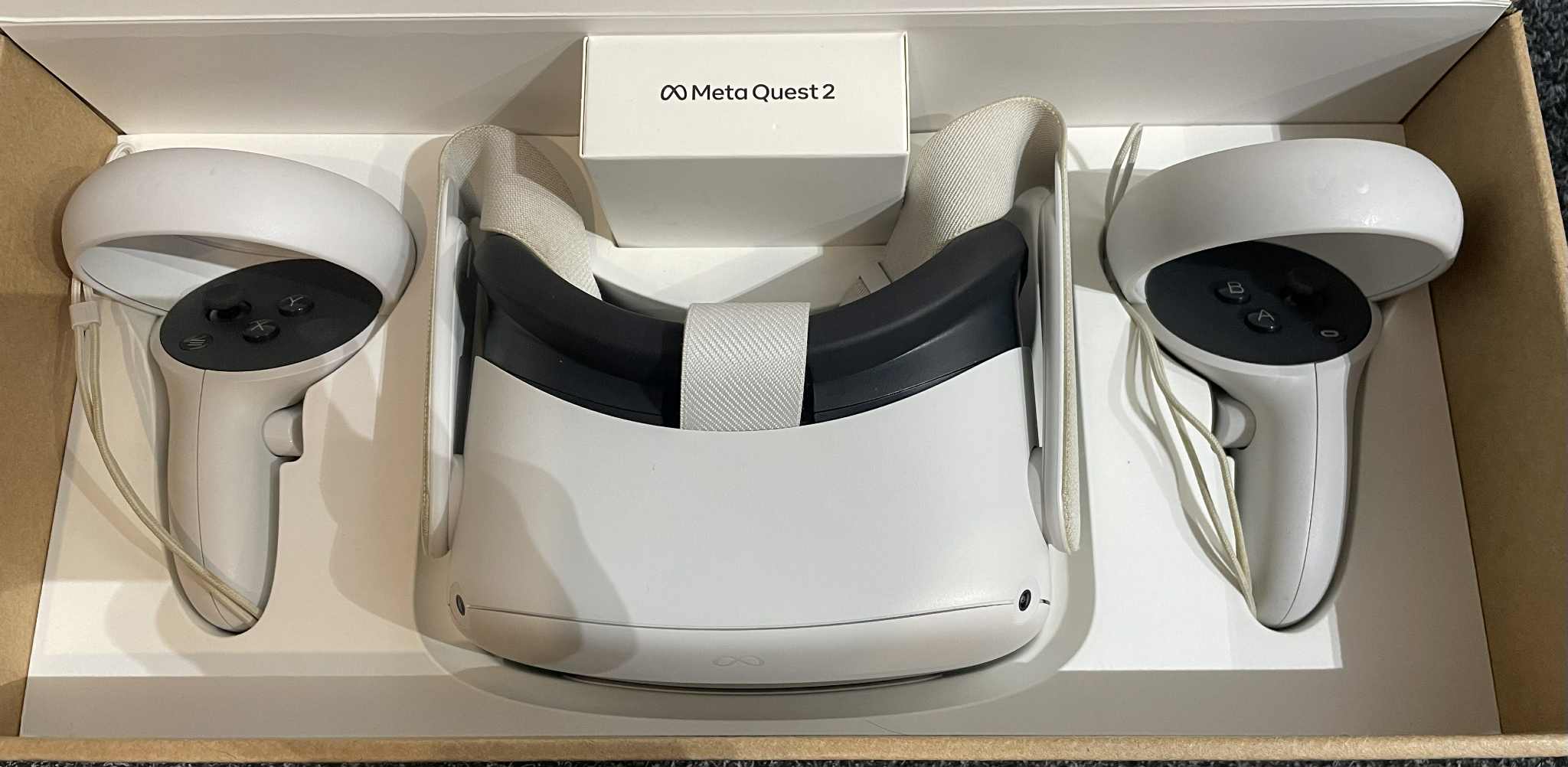 Meta Quest 2 - 128GB Comes boxed with 2 controllers and a charging lead. Minor cosmetic wear as it is seen in photos. Good working condition.