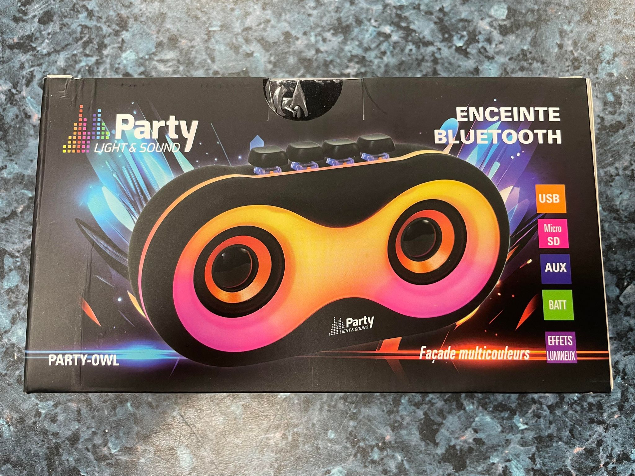 Brand New and Boxed Party Owl Speaker. Includes 9 Different LED Settings. Includes USB, Micro SD and Aux Connection.