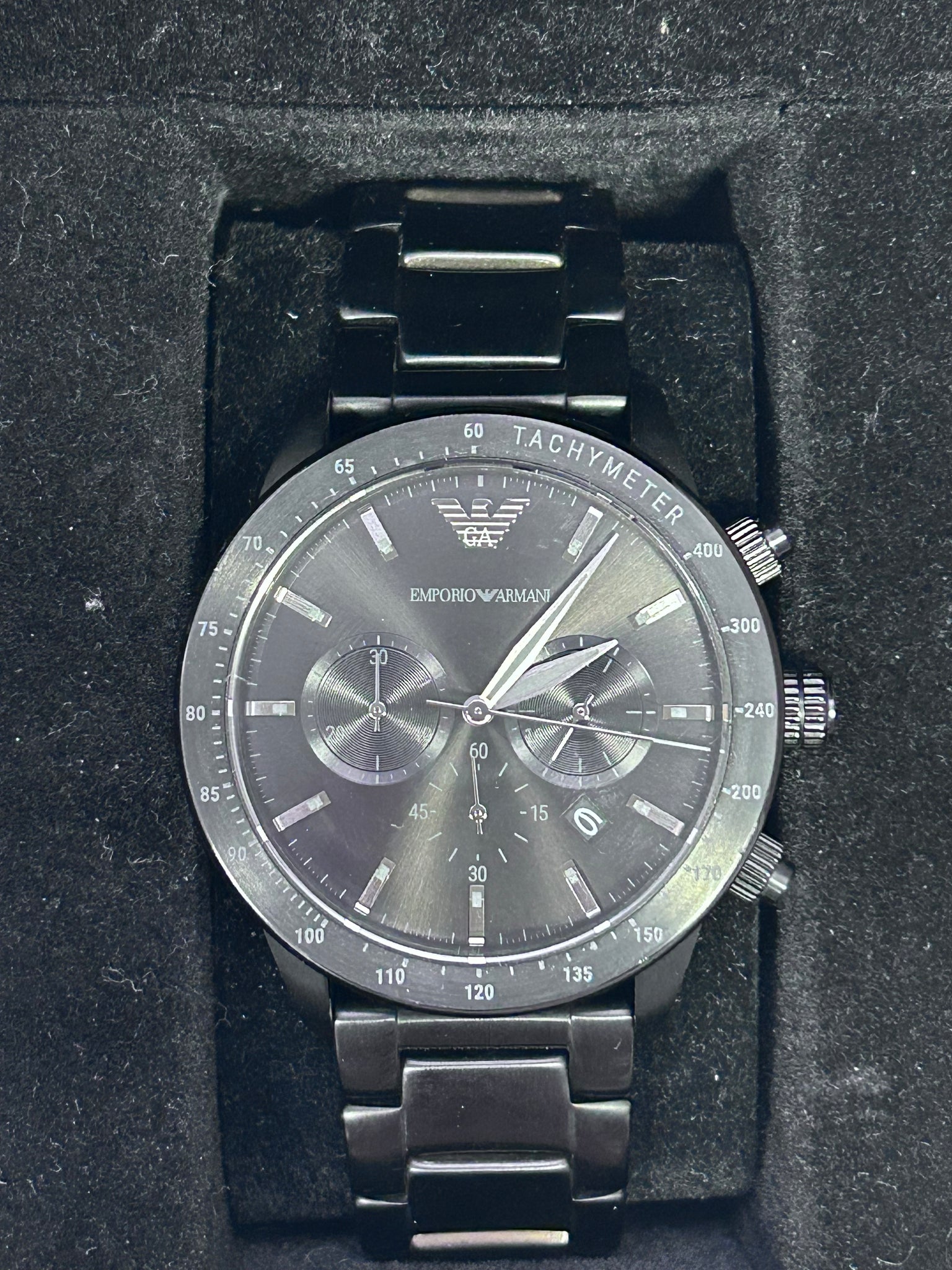 Emporio Armani 11242 Watch is in good condition, minor scratches on the strap by the buckle Complete with box and papers 4x spare links fully tested and working