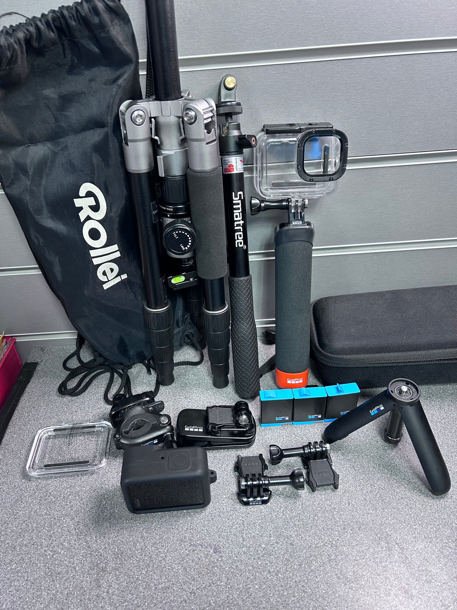 Go pro Hero 10 Fully tested and working. Comes with 4 batteries, 1x Rollei Tripod, 1x Smatree selfie stick, 1x Action grip with waterproof case, 1x clip mount, 1x bike mount and a carry box. 1 year warranty