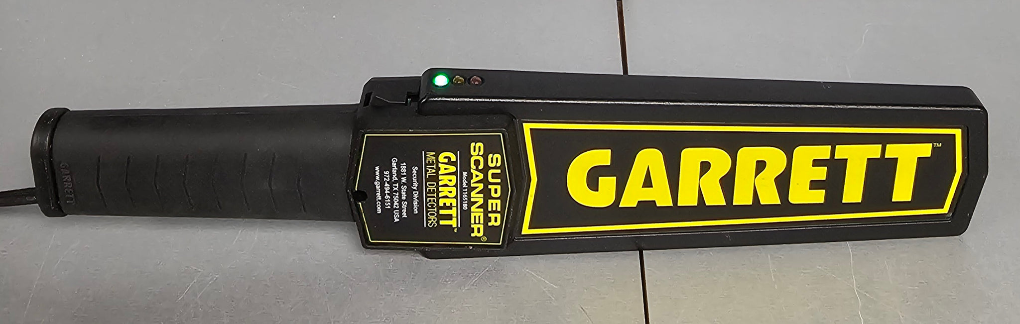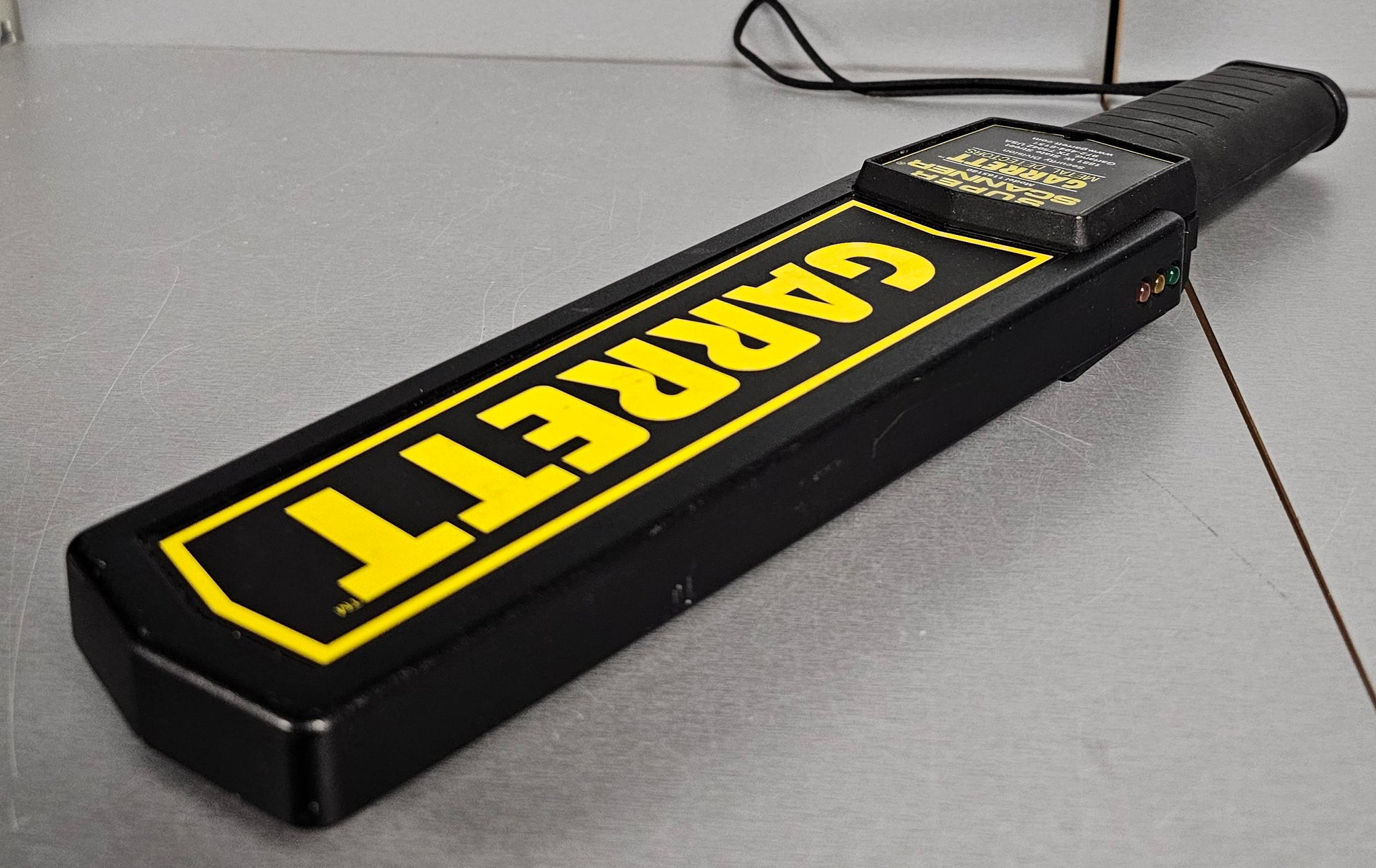 Garrett Super Scanner has rugged, high-impact ABS case with reinforced coil compartment. Detects medium sized pistol from 9", Large knife from 6", razor blade and box cutter from 3", foil-wrapped drugs and tiny jewelry from 1". Large 10" scan surface for quick, thorough scanning. No tools required to change 9V battery. Sharp audible alarm and bright red LED light indicates the detection of metal. Momentary push button temporarily eliminates detection of nearby ambient metal such as rebar, metal walls, etc. Green LED light indicates ON; Amber LED indicates LOW BATTERY; Red LED indicates ALARM.