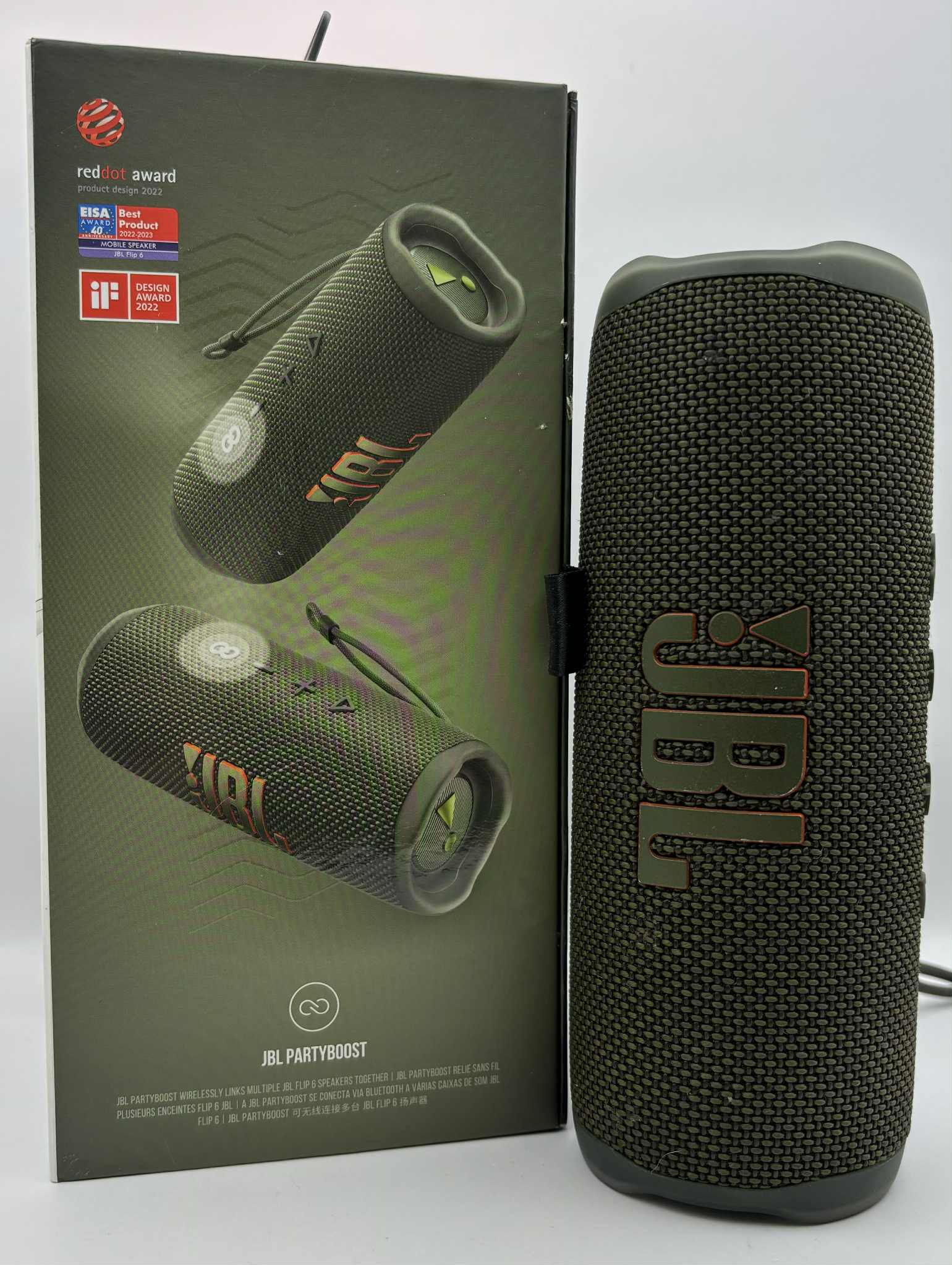 JBL Flip 6 Wireless Portable Speaker green boxed with power cable