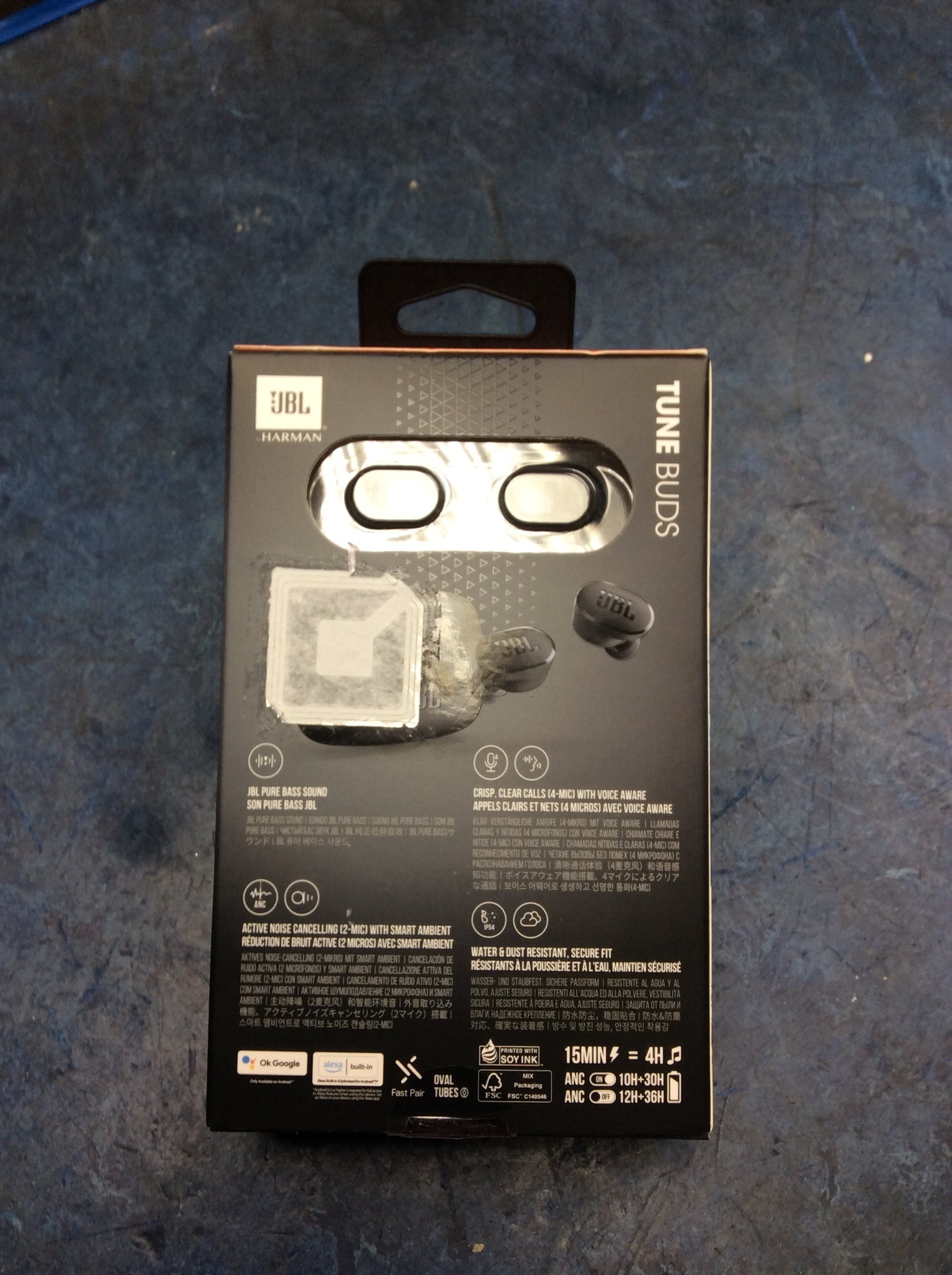 We have here a pair of JBL Tune buds that would be good for a run or a workout. As you can see they are unopened and sealed.
