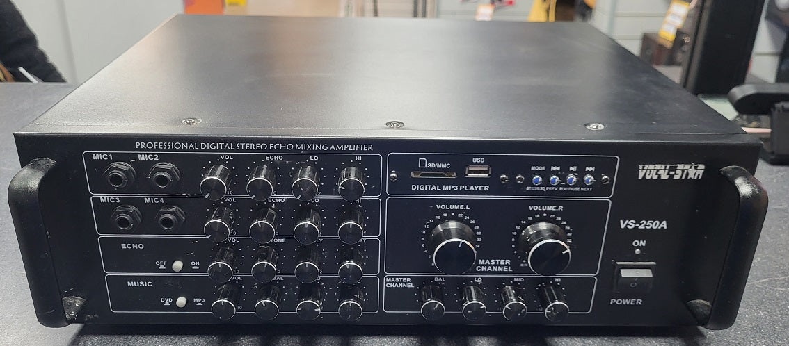 The Vocal-Star VS-250A appears to be a specific model of professional music mixing amplifier or a related karaoke component within the Vocal-Star brand, known for portable Bluetooth karaoke machines with features like wireless microphones, LED lights, and recording. While some listings show similar model numbers like VS-275 or VS-PS250, the VS-250A itself is described as a digital echo mixer amplifier with SD/USB inputs and Bluetooth, designed to connect to speakers and enhance vocals for karaoke.