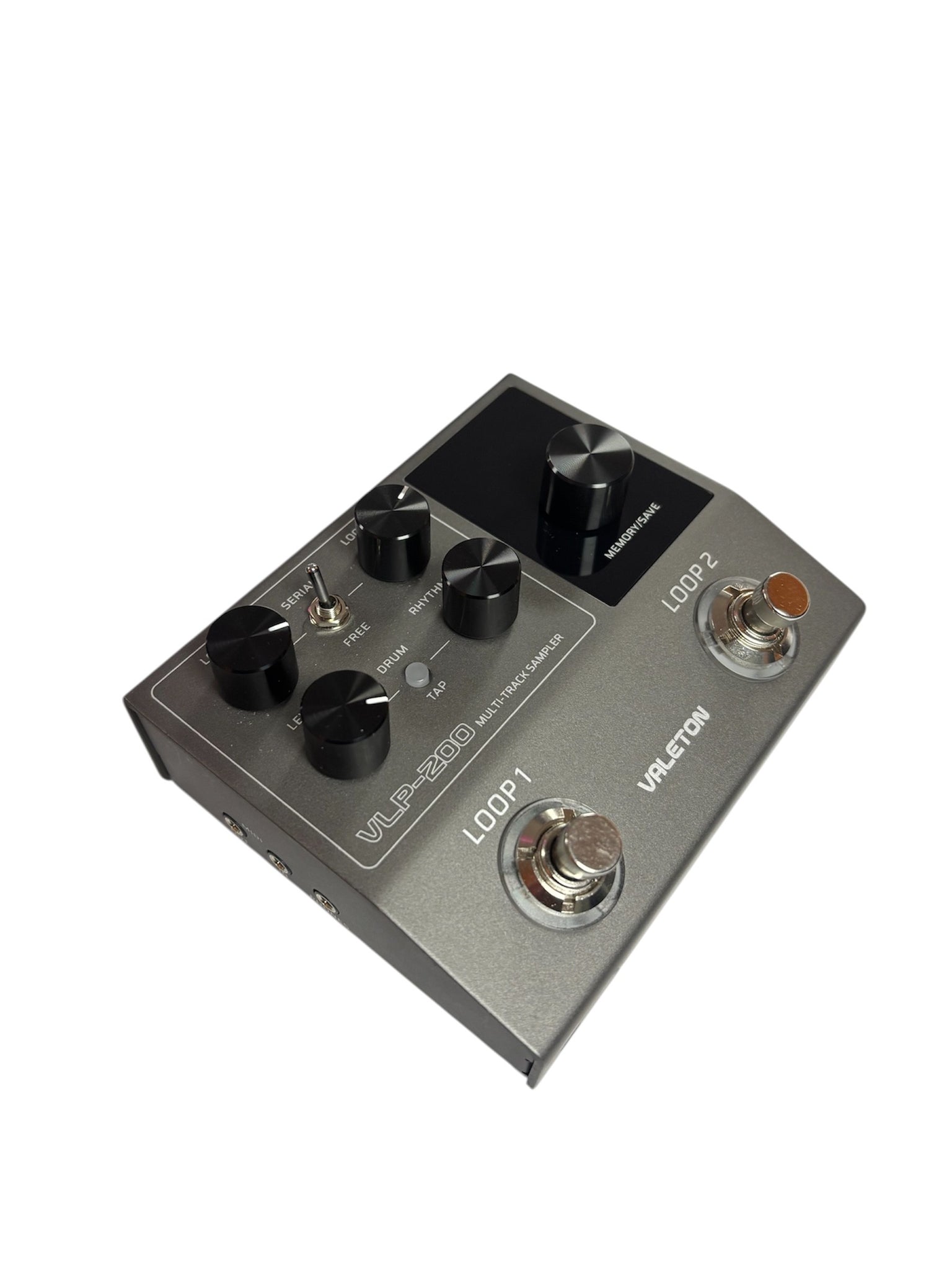 The VLP-200's dual footswitches independently control the recording and playback of LOOP 1 and LOOP 2! Its two built-in looper collaboration modes (SERIAL & FREE) allow for easy parallel playback of two loops or transition song sections between two loop tracks. In SERIAL mode, when both LOOP 1 and LOOP 2 contain recordings, you can control them to play in sequence, enabling seamless transitions between different sections and flexible control over the song's structure. When LOOP 1 and LOOP 2 are empty tracks, start by recording a bottom track on LOOP 1 and play it back. LOOP 2 will enter'waiting' mode and begin recording immediately after LOOP 1 completes its current loop. If LOOP 1 is reactivated during the recording of LOOP 2, LOOP 1 will start playing immediately, and the recording on LOOP 2 will automatically stop. In FREE mode, LOOP 1 and LOOP 2 can play simultaneously, and their recording durations do not affect each other. Essentially, in this mode, you have two fully functional, independently operating loopers. The length of each overdub track of LOOP 1 or 2 can be controlled as an integer multiple of the length of its own base track. If the current LOOP contains a recording, the overdub duration can be set to an integer multiple of the current loop track length. This is a useful technique for creative players. If the overdub recording time is not an integer multiple after pressing the footswitch to end recording, the footswitch light will become blue and flash slowly until the recording ends automatically at an integer multiple.