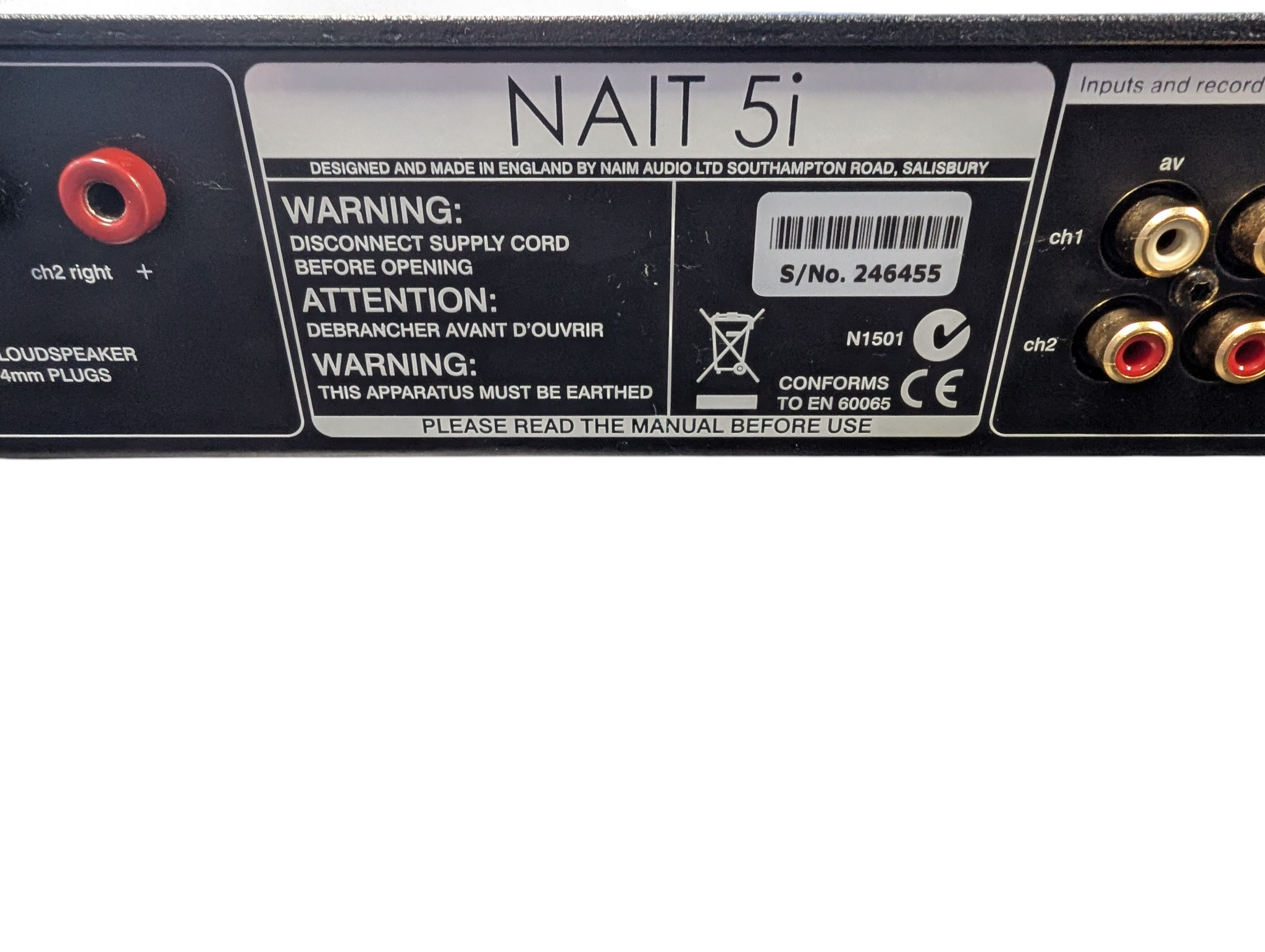 HERE WE HAVE A NAIM NAIT 5i AMPLIFIER WITH POWER CABLE AND 5 PIN CONNECTOR LEAD. THIS COMES UNBOXED AND (DOES NOT INCLUDE REMOTE) THERE IS A COSMETIC MARK ON THE CASE TOP *** FOR ANY QUERIES PLEASE CALL OUR CHORLEY STORE DIRECT MON-SAT 01257 752333