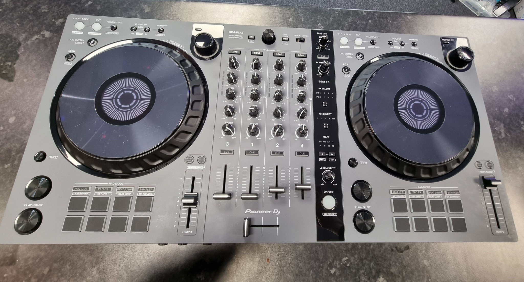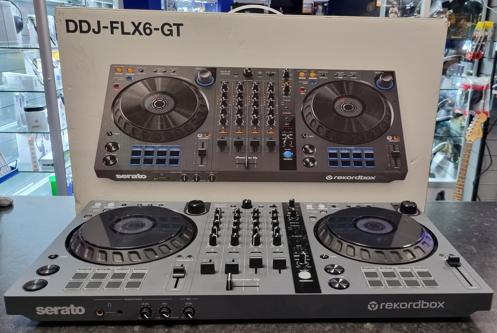 This 4 channel mixer comes in full working order with usb lead and box. Has only fair cosmetic markings from general use otherwise good. ******The fresh design of the DDJ-FLX6-GT introduces a new look and feel for its full-size jog wheels, which feature a graphite color plus a metallic texture on top and a rubberized coating on the outer ring for improved playability. The new unit adds support for VirtualDJ (license available separately), and retains free compatibility with rekordbox and Serato DJ Pro. TRAKTOR PRO 3 is available to use by downloading its mapping files. ********************************************************* FOR MORE INFORMATION REGARDING THIS ITEM CALL OUR CHORLEY STORE ON 01257 752333 OPEN MON-SAT 9.30-5PM