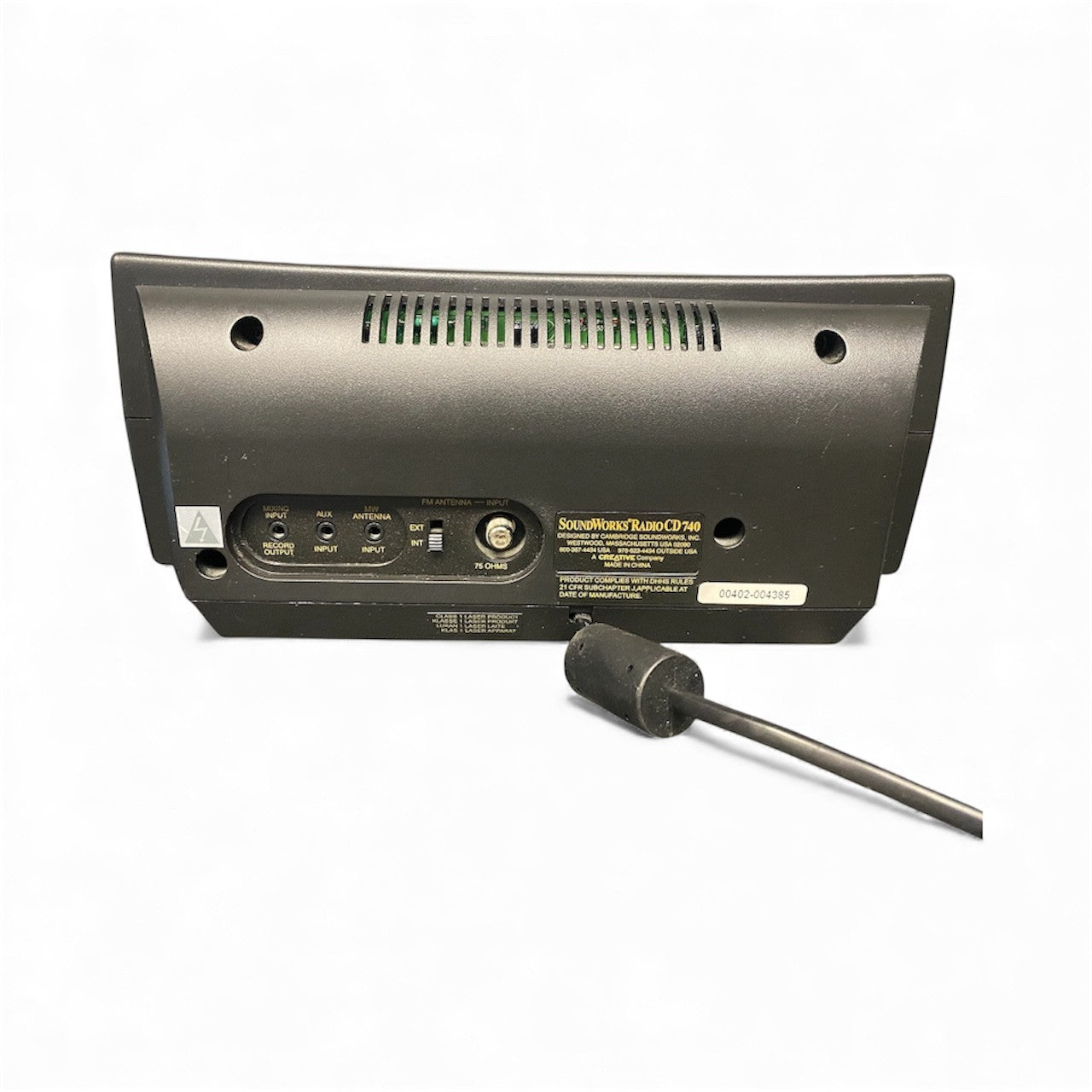 The Creative Soundworks 740 CD Player and Radio is a high-quality audio device that offers exceptional sound for music lovers. This unit, manufactured in China by Creative, features a CD player with a capacity for one disc, making it convenient for enjoying your favourite music. With added functionality for radio tuning (FM and AM), this sleek black device also includes a headphone jack for private listening. Overall, the Creative Soundworks 740 provides a versatile and top-notch audio experience for music enthusiasts.