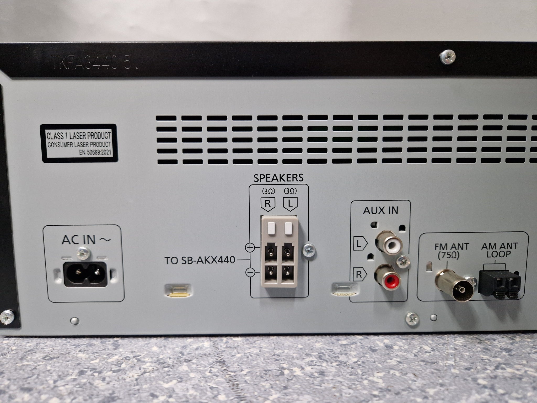 Panasonic SC-akx520 Boxed perfect working order, excellent physical condition, has a couple polishing scuffs on case, really good example, looked after and hardly used Powerful sound Crank up the volume and blast out your party playlist with the Panasonic SC-AKX520E-K Bluetooth Megasound Party Hi-Fi System. With 650 W of power, you'll get bass you can feel as well as hear. And with two tweeters and woofers balancing the full range of sound, everyone at your party will hear every note loud and clear. DJ from anywhere No need to be glued to the Hi-Fi to line up your next track. Just connect your smartphone via Bluetooth and manage your playlist from anywhere in the room. And with the Panasonic MAX Juke app for iOS and Android, you can control even more from your phone or tablet with a handy interface. Request the next track, access your playlist on YouTube, or even record DJ samples to make remixes on the fly. The right sound for your tunes Get the most out of your music using presets like Rock, Pop, Jazz and more. There's a Football Mode to enhance watching sports on TV – just pick the setting to suit your content. D.Bass Beat Give that bassy tune an extra boost with the Panasonic SC-AKX520E-K'ssecret weapon. D.Bass Beat amplifies the beat of the track to add some extra oomph to your music. It's a great tool to really get your party guests warmed up and in the mood to dance. Channels 2.0 Speaker unit - 6 cm tweeter x 2 - 20 cm woofer x 2 Amplifier 2 channel digital amplifier Output power 650 W (325 W + 325 W) Impedance 3 Ohms OVERVIEW Type Multi-room megasound Hi-Fi system Colour Black Lighting effects Yes CD player Yes APP App name Panasonic MAX Juke app App compatibility - iOS - Android App features - Music player - Jukebox request - DJ sample maker - Remote control