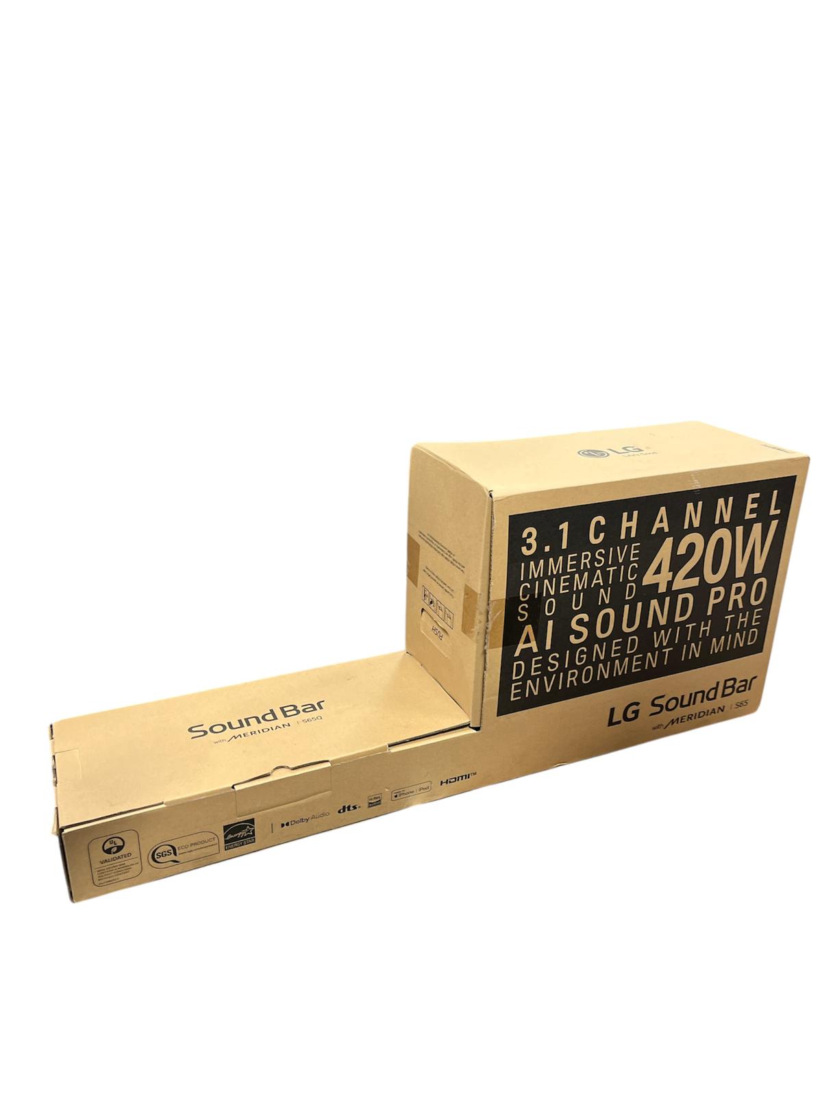Lg spq5b-w soundbar and subwoofer boxed comes with power leads and remote control