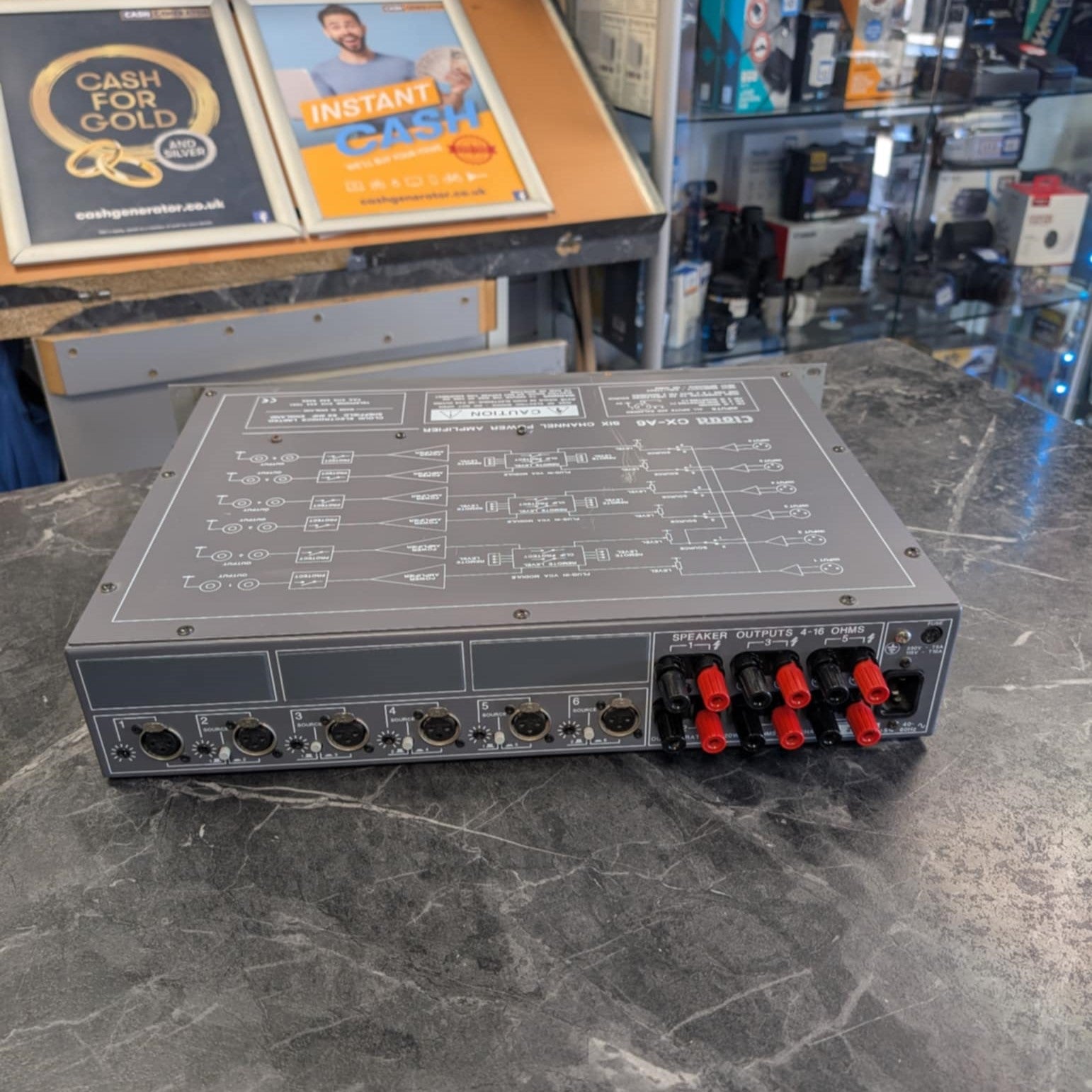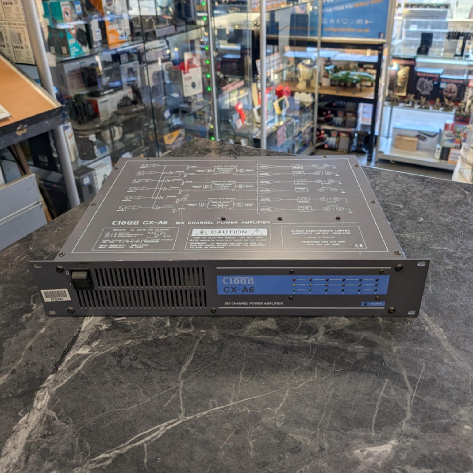 Cloud CX-A6 6 Channel Professional Power Amp Amplifier This has been fully tested and is in good working order. This is a pre-owned item and does have a few marks/scratches etc. Please note that this is the unit only and does not come with a power lead or cables. This does not come boxed however it will be very well wrapped for delivery! Free UK Delivery Any item over £50 will be sent out Royal Mail Special Delivery or Fedex (depending on size and weight of package) for next working day delivery Any items under £50 will be sent out by Royal Mail 2nd Class for delivery between 3 and 5 working days All orders made before 11AM will be sent out the same working day Please note that deliveries to Ireland, Highland of Scotland and the Isles may take longer to arrive.