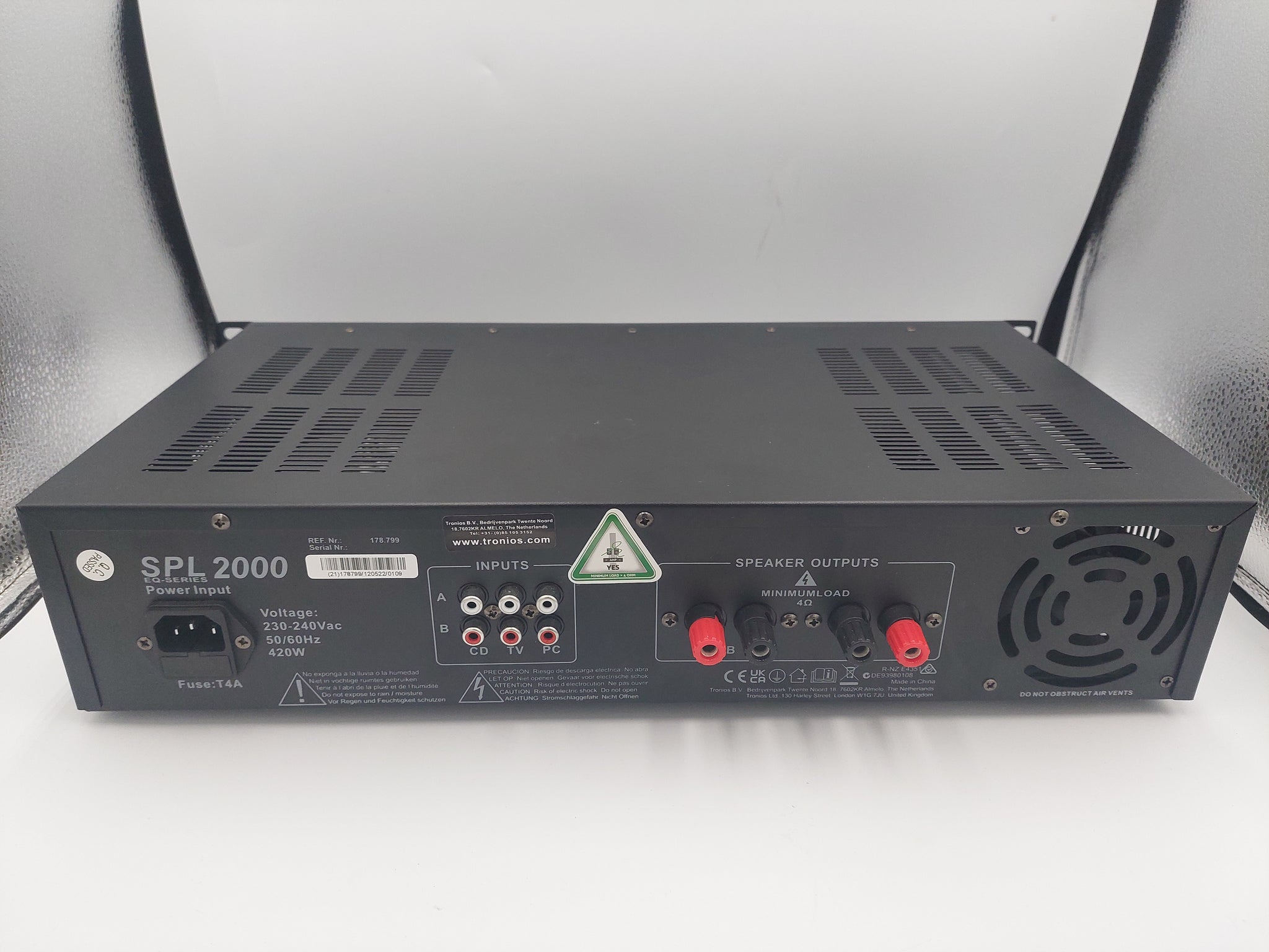 The Skytec SPL2000 is an EQ series PA amplifier ideal for semi-professional use that shouldn't miss in any DJ installation. The unit features 3 band EQ allowing you to fine tune sound. Three RCA inputs for various audio sources such as DVD player, TV, CD player, tuner, etc. A 3.5mm mini jack socket on the front plate allows for the connection of an MP3 player, laptop, desktop and more. The bright blue integrated LEDs make the amp look very cool in any rack mount. The powerful amp with cooling fans and clip indicator LEDs help you to ensure long lasting top performance.