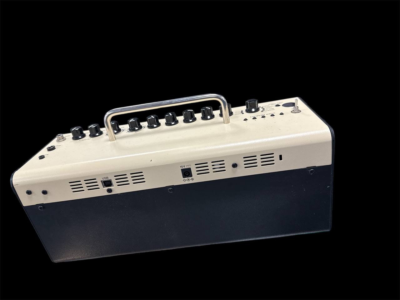 The Yamaha THR10 packs in everything you need for an off-stage amp. Real tube amp tone and dynamics, great sound at low volume, genuine hi-fi quality stereo playback and full recording capabilities. comes with USB cable - DOES NOT HAVE 15V CABLE