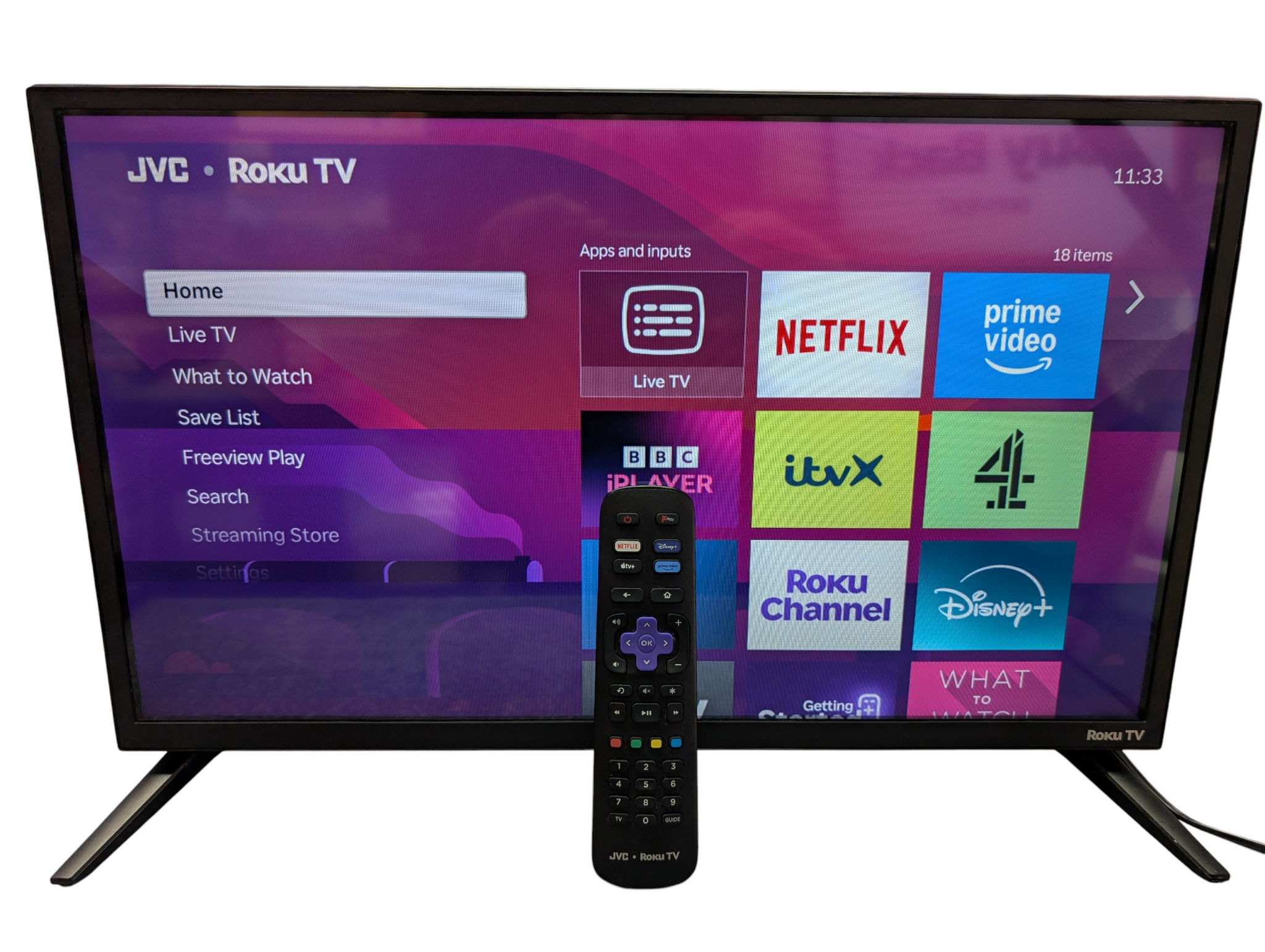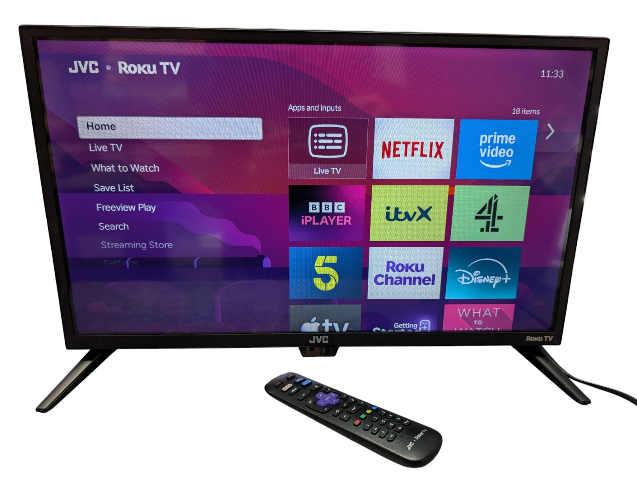 HERE WE HAVE A JVC 24" SMART ROKU TV WITH REMOTE IN VERY GOOD CONDITION. ** THIS IS FOR COLLECTION ONLY FROM OUR PRESTON STORE PR1 2EJ 01772 204889
