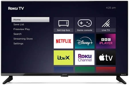 The Polaroid Smart Roku TV 32"" LED HD Ready Freeview Play is a sleek and modern television that offers a range of smart TV features. With built-in digital tuner for Freeview Play, this LED TV delivers a maximum resolution of 1080p (FHD) for a sharp and clear viewing experience. It includes features such as widescreen (16:9), built-in speakers, Ethernet port, and HDR TV capabilities, making it a versatile choice for entertainment. With its thin bezel design and wall-mountable feature, this TV is perfect for creating an immersive viewing experience in any living space. The included remote control and Wi-Fi readiness enhance the overall convenience and user experience.