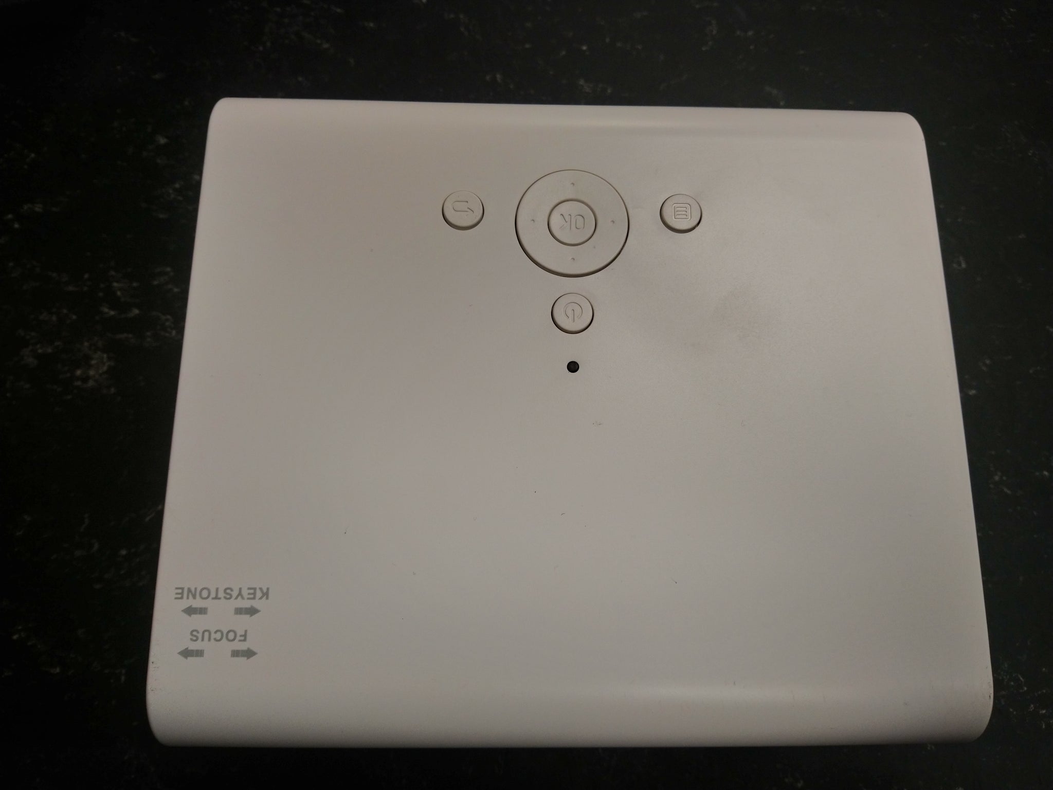 In good working condition, It does have a few light scratches to the body of the projector. However, nothing is actually affecting the way it works.