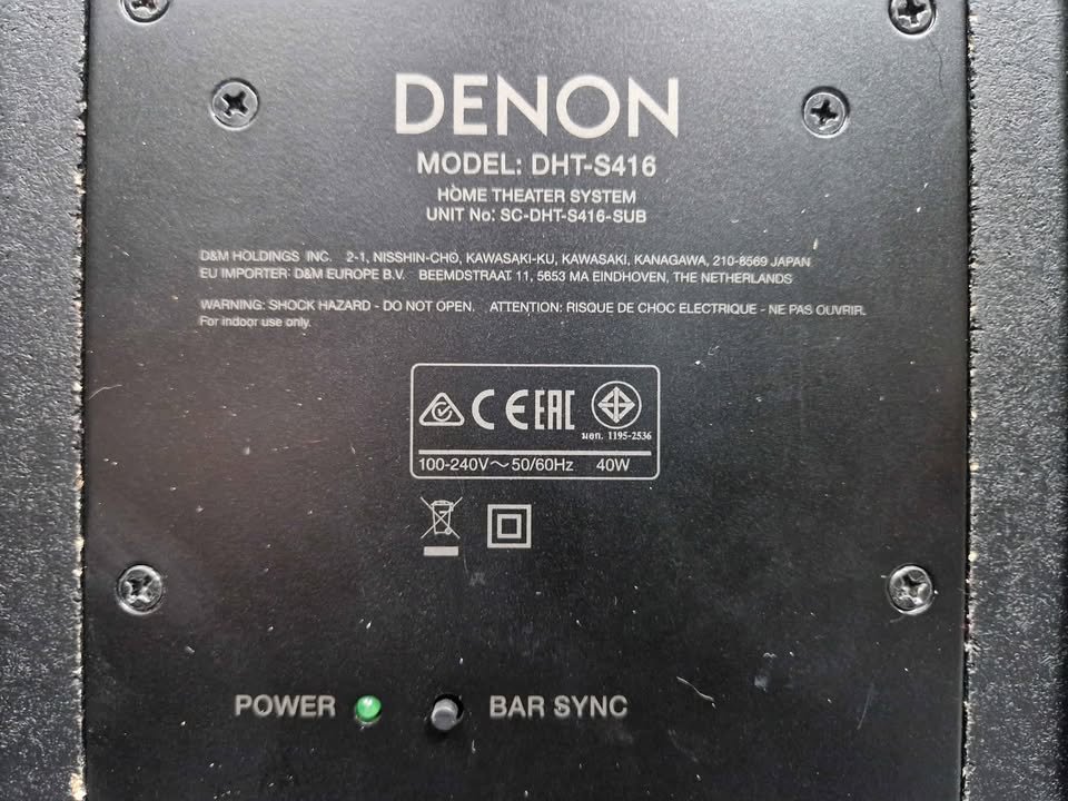 Denon DHT-S416 Home Theater System - Soundbar + Subwoofer NO REMOTE perfect working condition great physical condition, something small is loose rattling round in the sub sometimes, most of the time its stuck somewhere but occasionally can be heard when it works loose