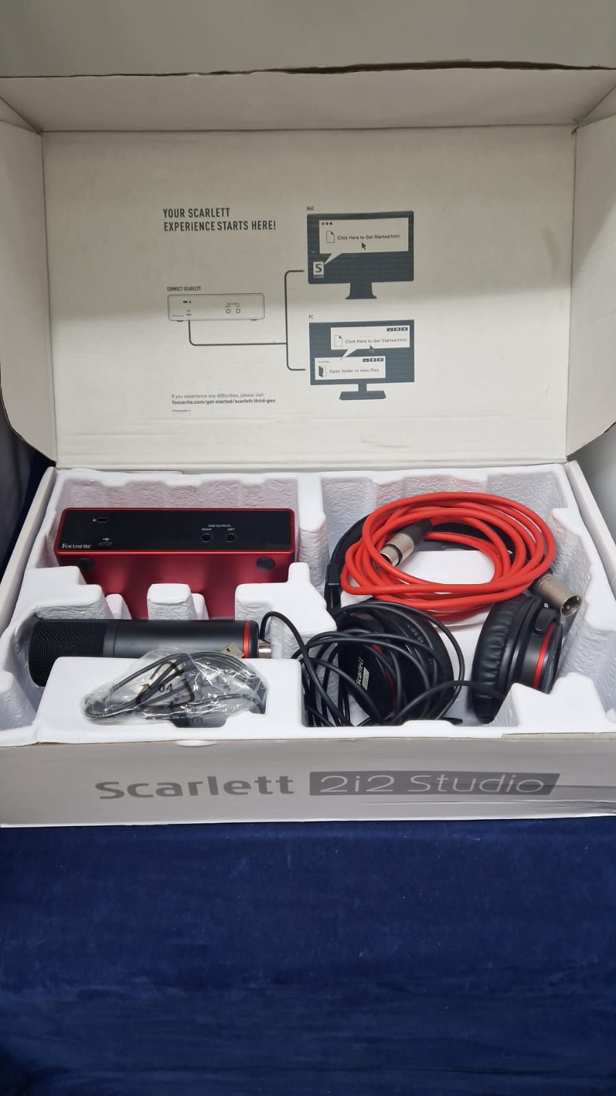The Focusrite Scarlett 2i2 Studio (3rd Gen) is an all-in-one recording bundle for musicians, featuring the Scarlett 2i2 interface with improved preamps and Air Mode for brighter sound, a CM25 condenser mic, HP60 closed-back headphones, and extensive software like Ableton Live Lite, perfect for singer-songwriters and podcasters needing studio-quality recording with easy setup. It offers two inputs for mics/instruments, high-resolution 24-bit/192kHz conversion, and direct connection to USB-C iPads.