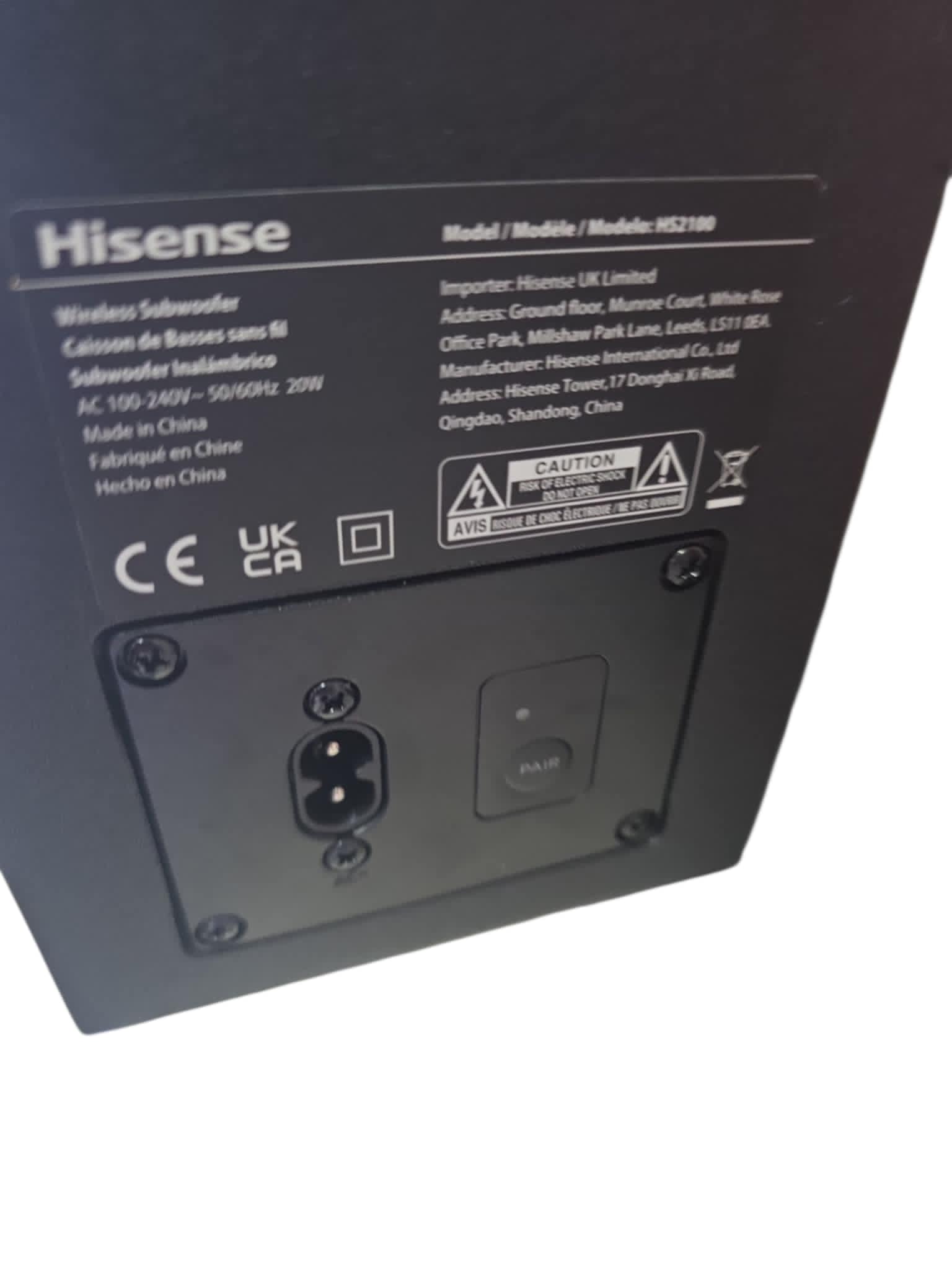 Here we have a Hisense hs2100 Sound bar and Subwoofer, comes with with power cables and optical, all in good condition. ****** for any quires please contact our Preston store direct Mon-Sat at 01772 204889.
