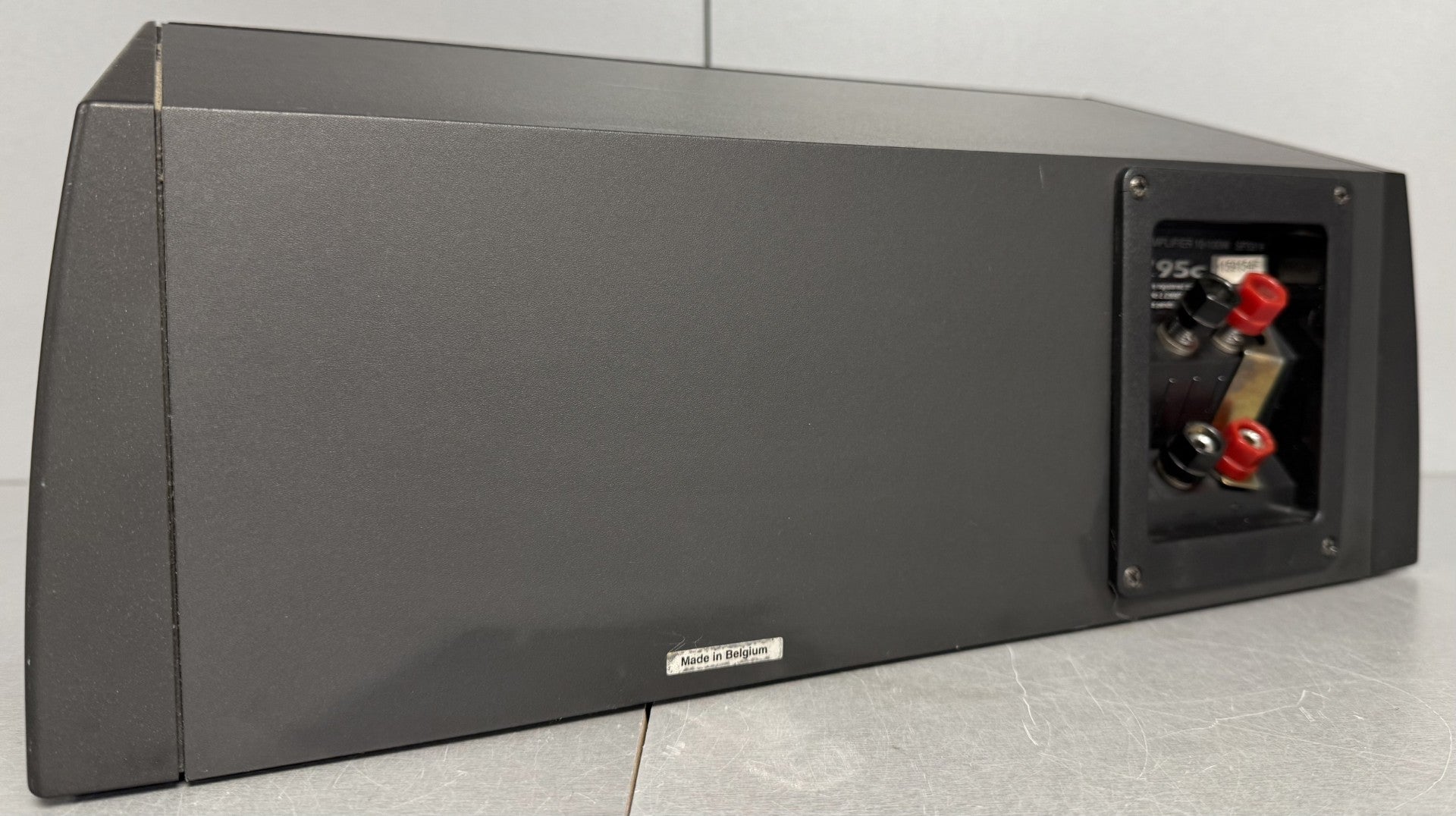 This KEF Q95 speaker is a centre speaker that produces clear, realistic vocal sound through a single point and disperses it over a wide area. The KEF Audio Q95 speaker has a frequency response of 85 Hz to 20 kHz. The impedance on this centre channel speaker is 4 ohms. This KEF Q95 speaker has a sensitivity of 91 decibels and a peak power handling of 100 watts. The bass and midrange drivers use a Uni-Q array for stronger sound. The terminals are binding posts for an accurate and consistent connection, but the speaker also has banana plugs. The speaker is set up for bi-wiring. The crossover filter on this KEF Audio Q95 speaker allows each driver to produce clear, distortion-free sound at its designated frequency, while the magnetic shielding in this centre channel speaker helps to reduce electrostatic interference, allowing the speakers to produce clean, clear sound. The soft dome tweeter driver is 1.9 cm in diametre, while the woofer driver 16 cm. The KEF Q95 speaker is 39.6 cm wide, 17 cm deep, and 17.5 cm high.