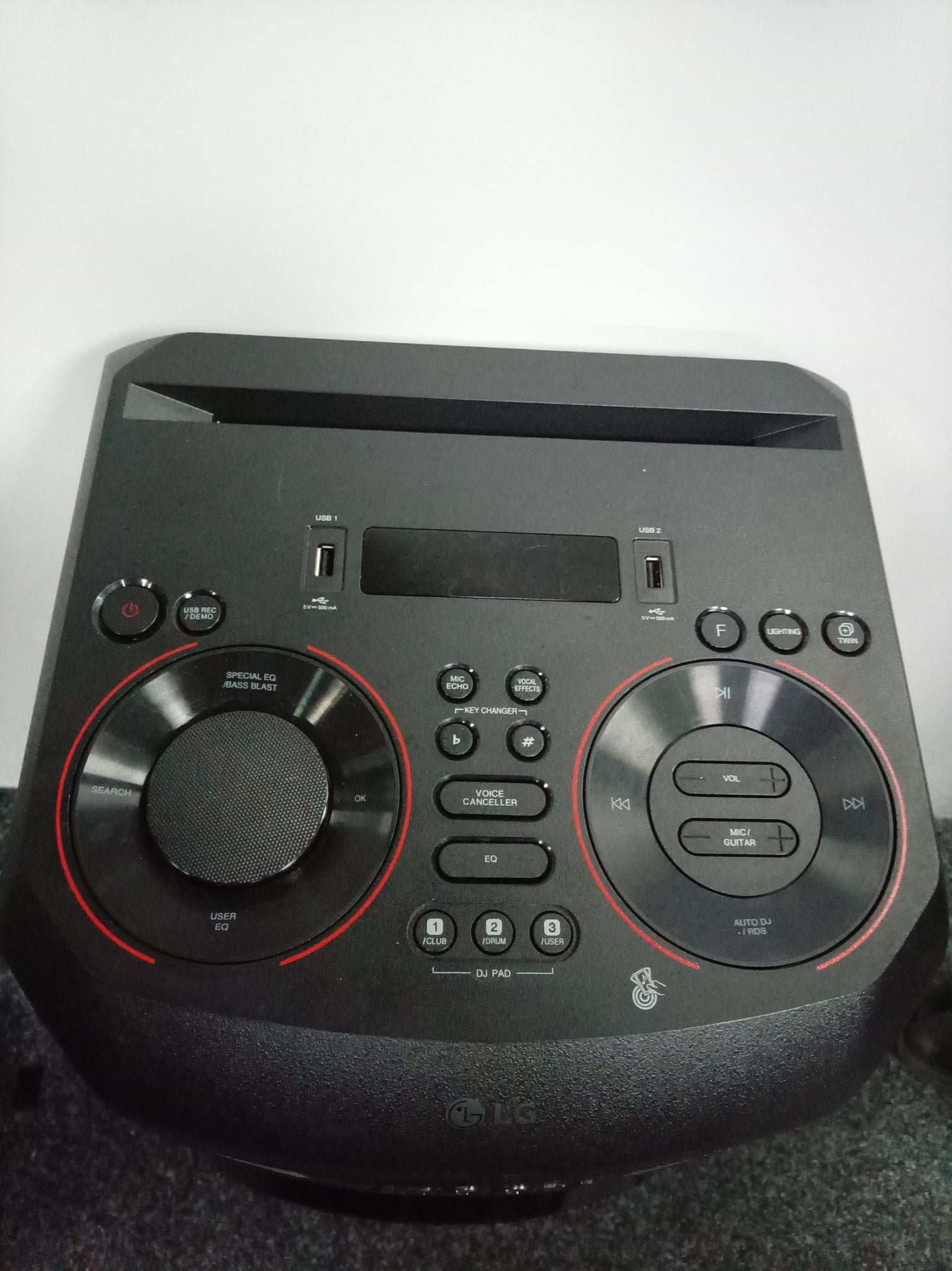 Feel the bold party sound Double Super Bass Boost, X-Shiny Woofer, and other fun features bring powerful rhythm that will turn the party up. Party Lighting. Light up the dance floor with colourful LED lights that vary and change with the rhythm of the beat to add more excitement to your parties. Take control of the dance floor through DJ App. Get the party dancing and apply sound effects straight from the DJ App on either Android or iOS, or control the DJ Pad on the speaker. More ways to enjoy the party. Plug in to the guitar input and get the room rocking. Or use a USB and the radio to play music.