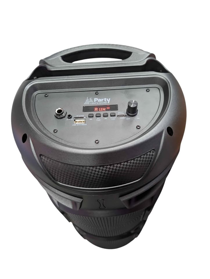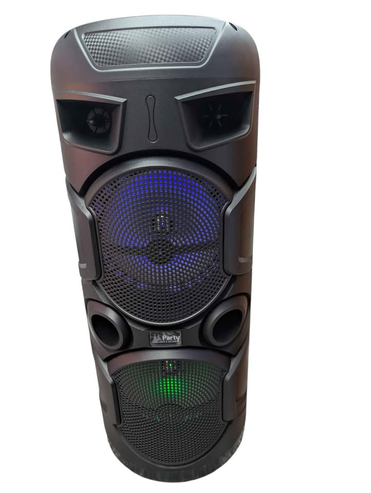 Party Light & Sound PLUTON Speaker Best For: Parties, karaoke, and events, due to its size and included microphone. Key Specs: Power Output: 300W maximum. Drivers: 2 x 8-inch/20 cm woofers. Connectivity: Bluetooth, USB, MicroSD, 3.5mm AUX, 6.35mm microphone input. Portability: Battery-powered (Lithium 3.7V - 1500mAh), lightweight (3.08kg for the main unit), and floor-standing design. Features: Built-in LED light effects, TWS (True Wireless Stereo) function to pair two units, included wired microphone and remote control, and a microphone holder on the rear.