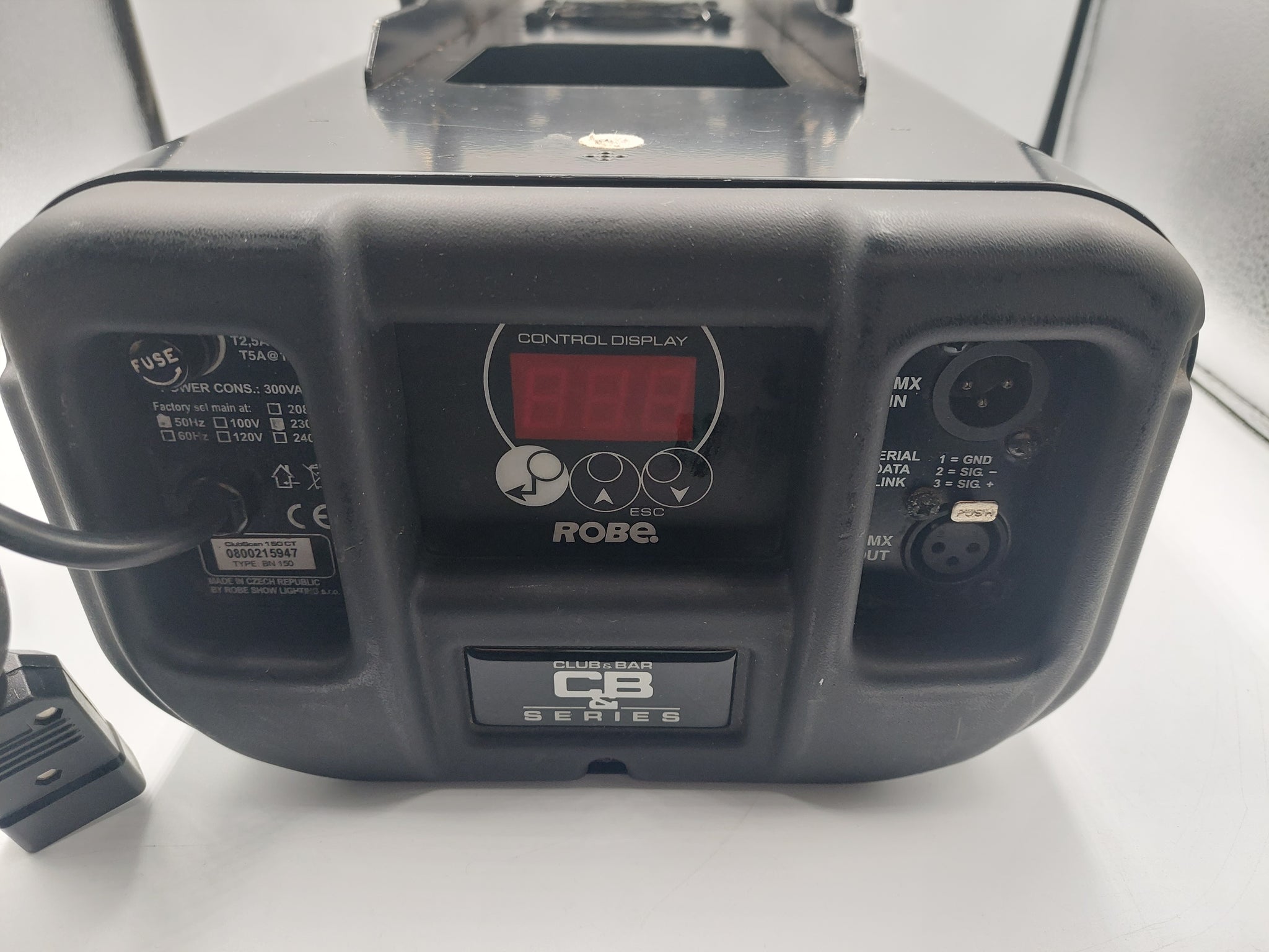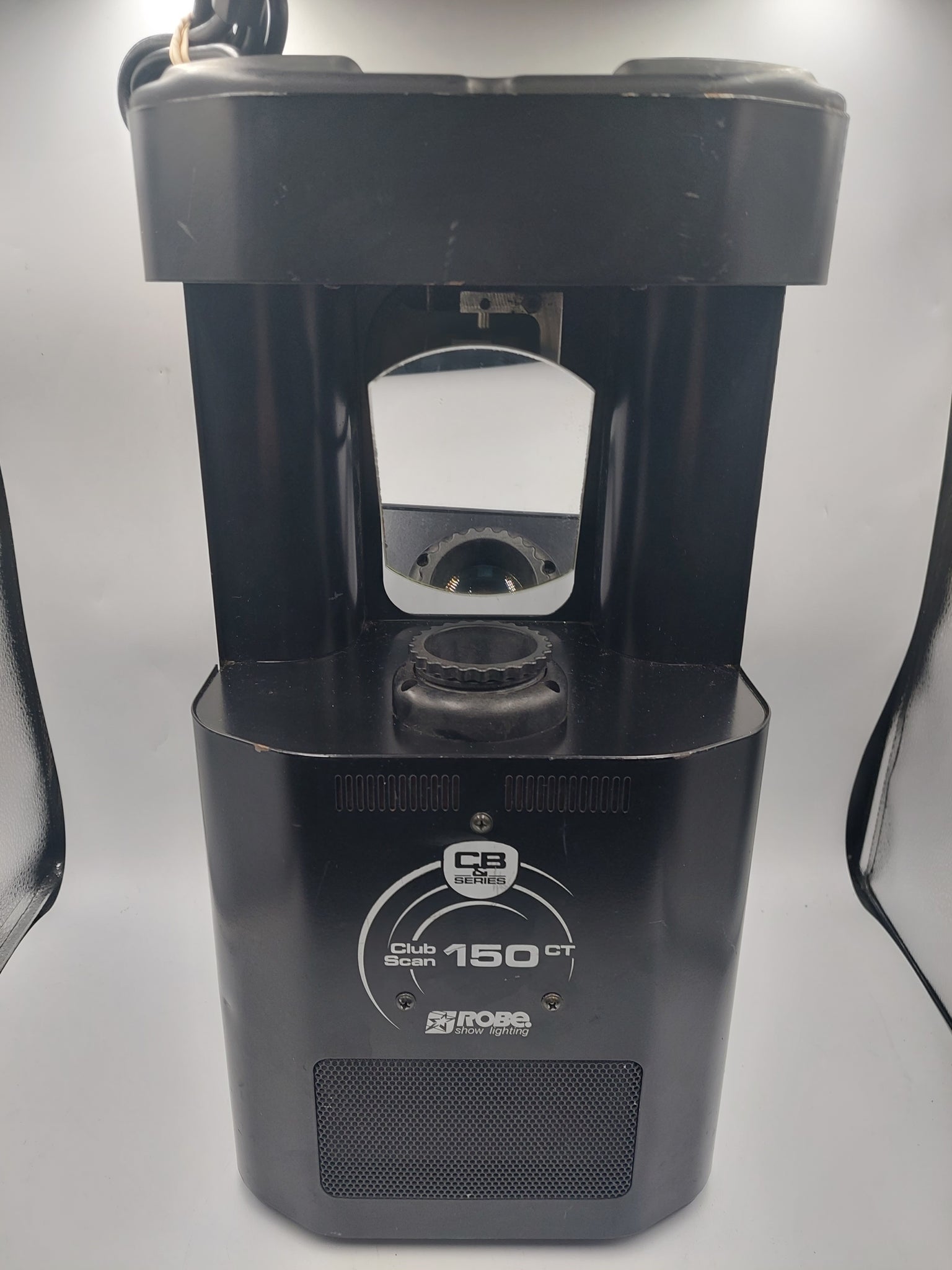 The Robe ClubScan 150 CT is a compact, 150W discharge scanner designed for clubs, bars, and mobile DJs, featuring improved electronics, 13 static gobos, and 11 dichroic colors + UV. It operates via DMX, master/slave, or auto/music-trigger modes, offering strobe effects and manual focus, with a robust design geared toward high-energy lighting environments.