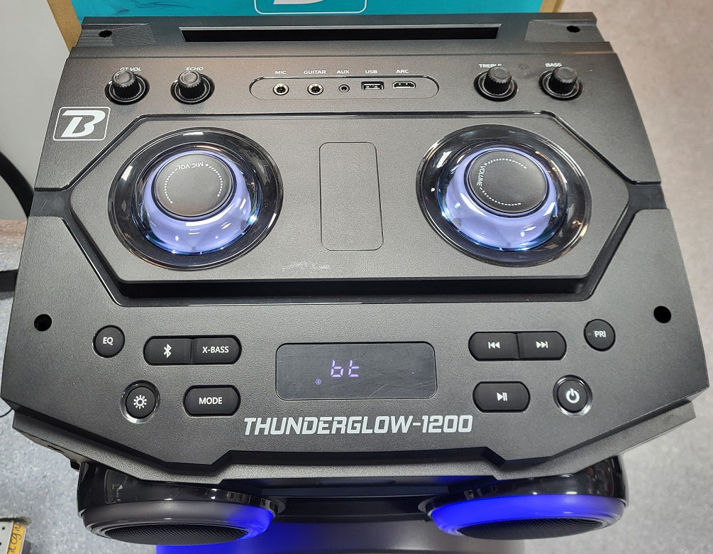 The Boomtone DJ Thunderglow-1200 is a powerful active party speaker system designed for DJs, live music, and home audio, featuring dual 12-inch drivers and built-in LED lighting. It is marketed as a high-output, versatile unit suitable for, birthdays, parties, and karaoke.