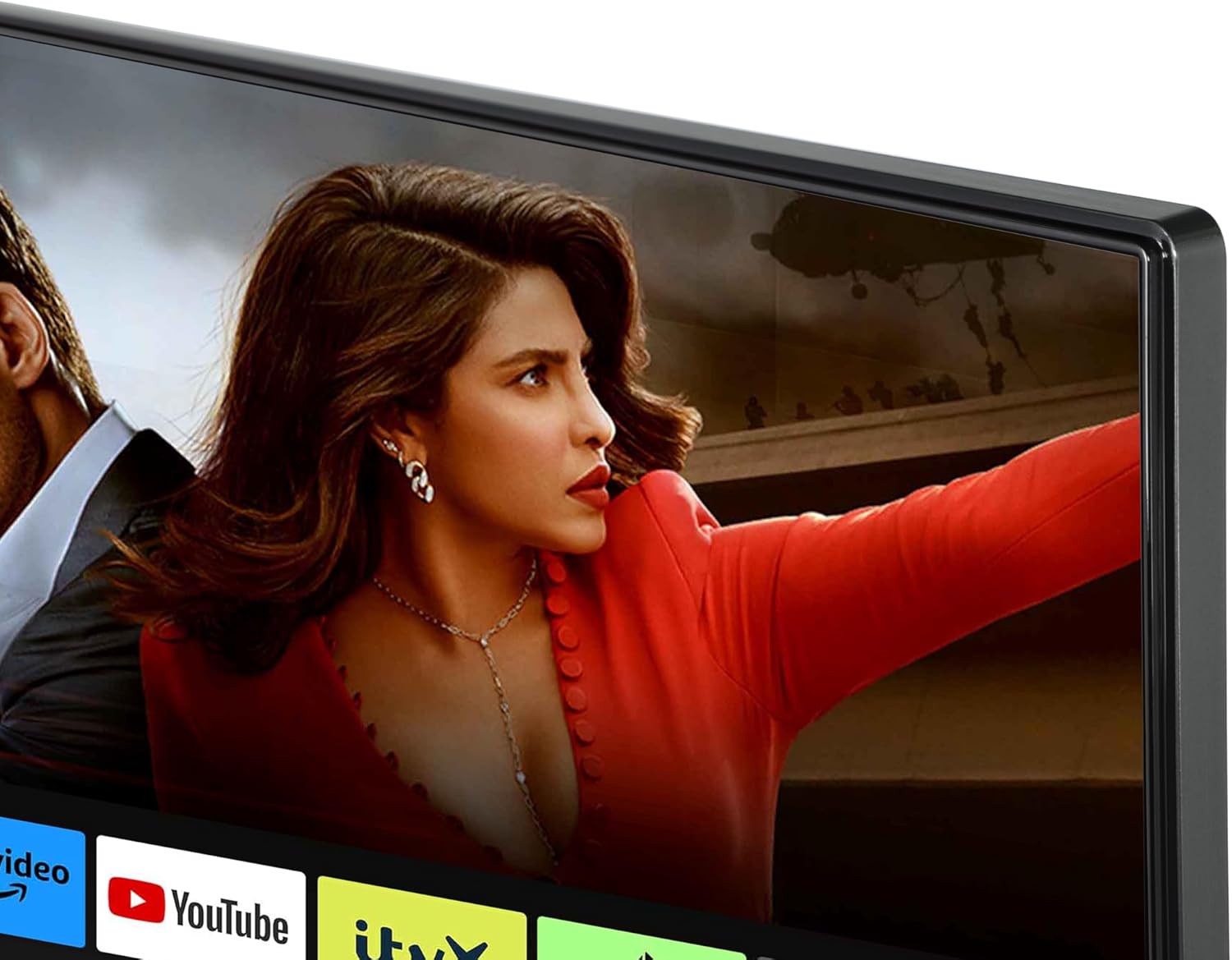 Experience true colour, QLED offers a range of 1 billion colour shades for picture precision like never before. Cinematic resolution. Get a TRU-ly smooth, upscaled and more detailed viewing thanks to our TRU picture engine technology. Enjoy picture perfect, 4K HDR content like no other. Combined with Dolby Vision, experience highlights up to 40 times brighter than standard, and blacks that are 10 times darker. Everything you need to create an epic sound experience. Seamlessly combining Dolby Atmos, internal subwoofer* and speakers, designed by Onkyo. Fire TV makes it easy with all your favourite content on one easy-to-navigate home screen. Customise your viewing experience with up to 6 user profiles. Create your own world of entertainment by adding titles to your watchlist and getting personalised recommendations. Press and ask Alexa to discover new content, adjust the volume, change channels or even control compatible smart home devices. Connect compatible smart home devices to your Fire TV and ask Alexa to turn off the lights, adjust the temperature, or use picture-in-picture to see who’s at the front door.