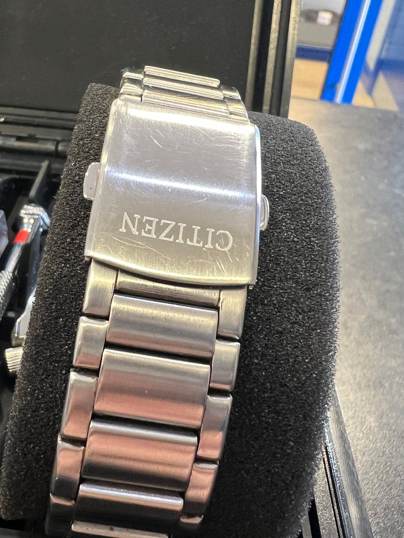 The Citizen Mechanical Sports Diver is a stylish and accurate diving watch, perfect for all your underwater activities. Featured in 46mm stainless steel case and matching bracelet, with a black dial and white accents, additional features include rotating bezel, day/date display, luminous hands and markers, water resistant to 100 metres and an interchangeable strap, presented in a special Dive box. •Automatic movement •8200-S108314 •Stainless Steel •Boxed with interchangeable strap